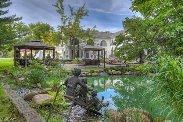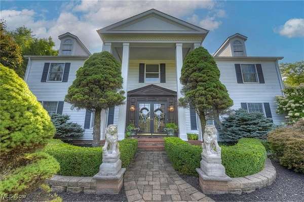 Stately, quality-built colonial on 4.9 acres. Paver driveway w/ double lion entrance, double door entry to marble foyer, open staircase, great flowing floorplan. Amish cabinetry & finish/trim work, gleaming HW floors, Brazilian cherry library w/ FP, Formal LR & DR w/bay area. Tuscan granite kitchen w/ island, appliances & plan area, breakfast rm w/ full granite prep kitchen, two-sided marble fireplace, two-story great rm w/walls of windows, den with fireplace & wet bar. 1st floor laundry with cabinets & powder rm, office, open staircase to loft (used as gym/craft area) overlooking great room. Vaulted master suite with chandelier & Amish-built dressing area room with natural light and cabinetry. Double sink master bath with glass tile shower. 3 additional bedrooms and 2 full baths off hallway complete upper level. Lead glass door to LL with impressive theater room, bar, full marble kitchen, full bath w/steam & rain shower, unfinished bsmt. storage area, central vac, security system. Attached greenhouse with heat & water. Outdoor kitchen & smoker plus huge pizza oven. 23' breezeway/patio w/ pavers, 3-tier fountain, Koi pond with waterfall, potting/lawn equipment shed, gazebo, massive multi-level patios for entertaining with hand-poured cement balusters, garden area backs to wooded lot. 3-car heated garage with walk-up 28' storage/workshop, 2-car att. garage w/ paver flooring. Beautiful landscaping w/ lights & retaining walls. Privacy, grace, & workmanship are found in this one-of-a-kind home.