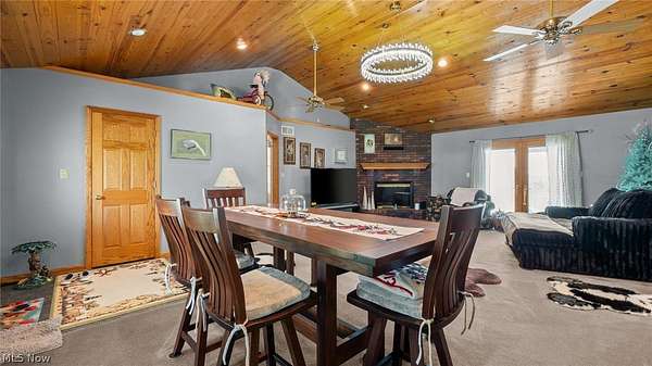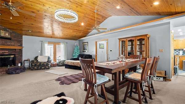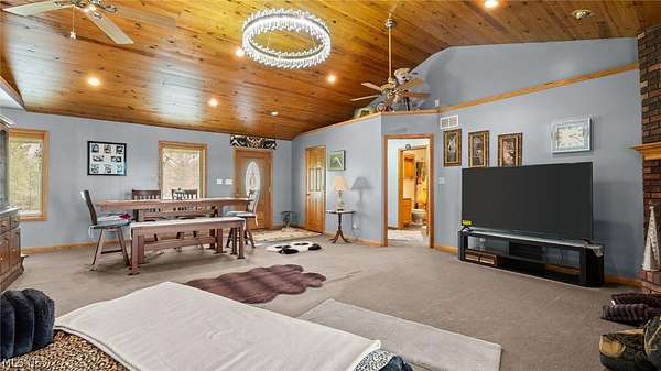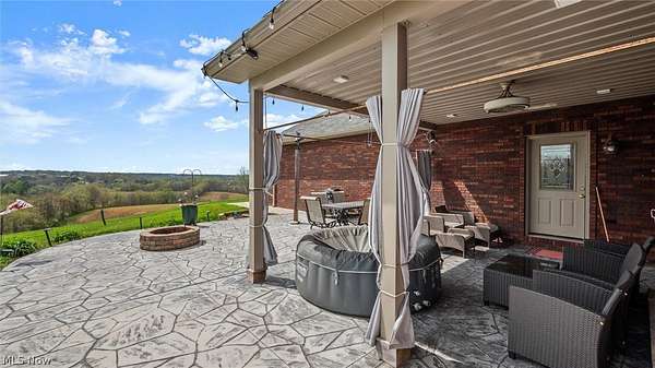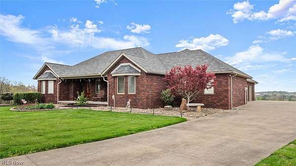 Experience the perfect blend of privacy, comfort, and functionality with this exceptional 16.1-acre property in the East Muskingum School District. Surrounded by beautiful countryside views, this spacious 4-bedroom, 3.5-bath ranch offers room to live, relax, and entertain. Inside, the open main living area showcases vaulted ceilings and a cozy fireplace, creating a warm yet airy atmosphere. The fully equipped oak kitchen offers ample workspace and storage, ideal for everyday cooking or hosting guests. Step outside to enjoy the large covered porch, expansive patio, and fire pit area-perfect for taking in the peaceful setting or gathering with family and friends. The finished walkout lower level provides additional living space with a generous family room, second fireplace, plentiful storage, and direct garage access by a separate staircase. A cedar-lined secure vault room with Fort Knox door adds a unique feature for valuables or storage needs. Car enthusiasts and hobbyists will appreciate the heated 3-car garage with its own half bath and separate HVAC system. Above the garage, a spacious bonus room offers endless possibilities for a home office, gym, media room, or guest quarters. A whole-house Generac generator provides added confidence and convenience year-round. This one-of-a-kind property delivers space, scenery, and amenities rarely found in one package.