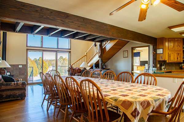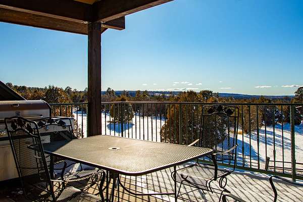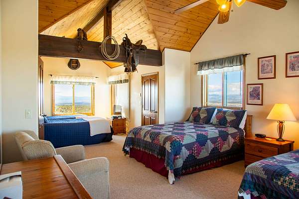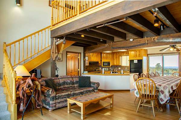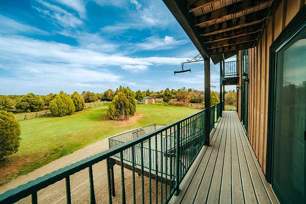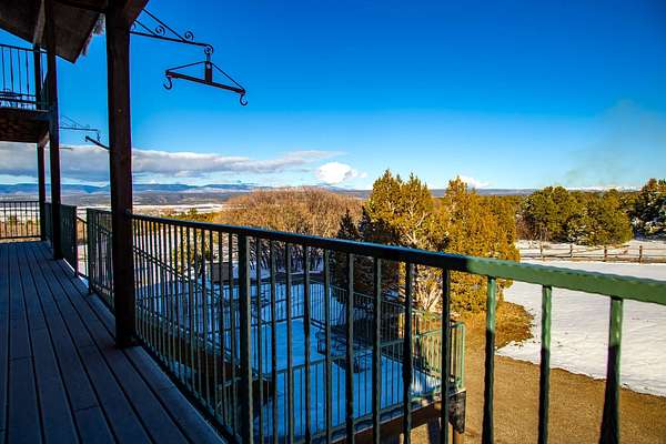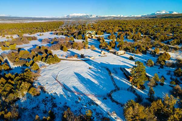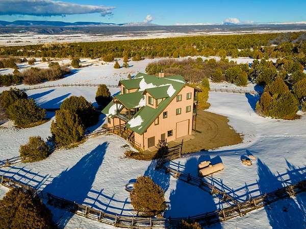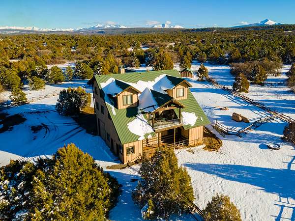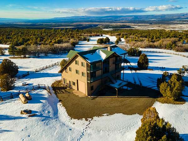 Located just 2.5 miles from the town of Norwood in the heart of western Colorado, the J2F Ranch offers a rare combination of privacy, usable acreage, and immediate access to large blocks of public land. The 359± acre property borders approximately 25,000 acres of National Forest and 9,500 acres of BLM, creating exceptional opportunities for hunting, horseback riding, and backcountry recreation while remaining within easy reach of Telluride and Montrose. Direct access to these surrounding public lands significantly expands the usable footprint of the ranch. The ranch sits at approximately 7,300 feet in elevation and features a mix of rolling hills, timbered ridges, and a scenic canyon corridor. Vegetation includes pinyon and juniper, ponderosa pine, and oakbrush, along with approximately 26 acres of irrigated pasture. Views extend to the San Juan Mountains, Lone Cone, and the distant La Sal Mountains. Water is a strong feature of the ranch. Two ponds provide dependable water for wildlife and livestock, while a seasonal creek runs through the canyon portion of the property. Flood irrigation supports the irrigated pasture and overall productivity of the ranch. The property includes six shares of Lone Cone Ditch Company water supporting the irrigation system. Located in Colorado GMU 70, the property supports mule deer, turkey, elk, and bear. Deer and turkey are commonly seen across the ranch, while elk and bear move through the canyon corridor between the surrounding public lands and nearby private ranches. The unit offers over-the-counter elk hunting as well as landowner voucher opportunities for elk and deer. Improvements include an approximately 2,768 square foot home with four bedrooms and five bathrooms, well-suited as a full-time residence, mountain retreat, or lodge-style base. Additional improvements include a first-floor drive-through garage with 14-foot roll-up doors, a barn, and a separate cabin. Livestock use is a defining feature of the property. The ranch includes horse facilities with a built-in pen and tack shed adjacent to the home, along with additional livestock facilities, fencing, and infrastructure supporting grazing operations. Utilities include power, septic, two wells, and two 1,500-gallon cisterns. Propane service is provided by a 1,000-gallon and a 500-gallon tank. The property is accessed via county road and offers year-round access. Recreation opportunities surround the ranch. Immediate access to the National Forest and BLM provides miles of riding and exploration. The nearby Thunder Mountain trail system is popular for mountain biking and trail riding, while the region offers hiking, hunting, and winter recreation. Telluride Ski Resort is approximately 35 miles away, and Miramonte Reservoir provides nearby fishing. The J2F Ranch is well-suited for buyers seeking an equestrian base, private mountain retreat, or hunting property with direct access to expansive public lands. The property is commercially zoned, allowing for additional opportunities such as a lodge, guest accommodations, or short-term rental operation. With its combination of acreage, improvements, water, and proximity to Norwood and Telluride, the ranch offers a versatile Western Colorado lifestyle property.