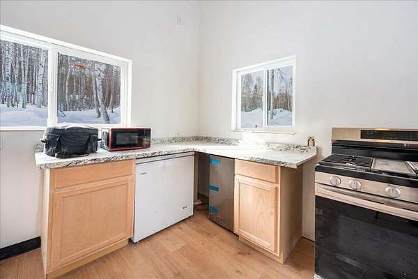 Est $488/moTucked away on a spacious 1.29-acre lot, this charming Alaskan cabin offers the perfect blend of privacy, potential, and peaceful surroundings. The interior is mostly finished, providing a comfortable and functional living space ready for your personal touch. Outside, the cabin awaits its final exterior siding—giving you the opportunity to customize the look and truly make it your own. Whether you're looking for a getaway, investment, or year-round living, this property offers a rare chance to own land and build equity in beautiful Alaska. Buyer to verify all information. Property sold as-is.