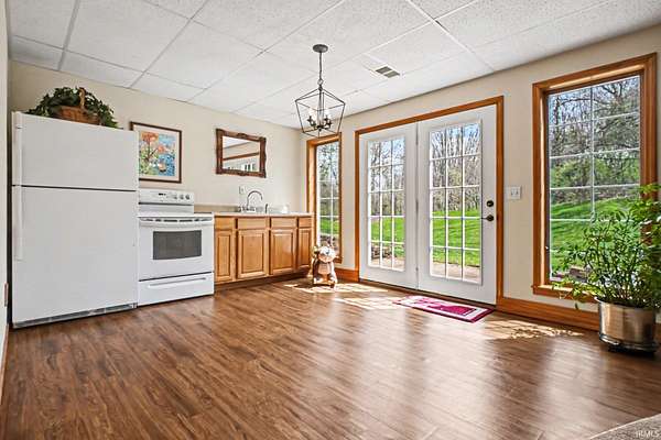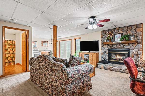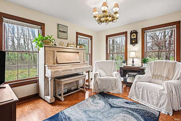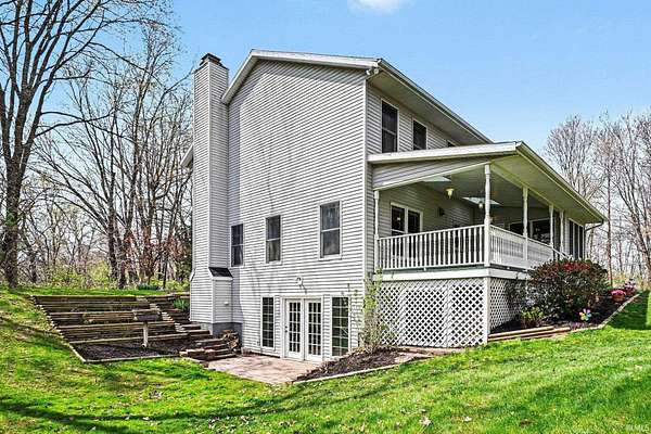 Set on 10.42 private, mostly wooded acres in desirable Winona Lake, this spacious two-story home offers the perfect blend of seclusion and convenience—just minutes from Grace College, The Village of Winona, and scenic walking trails. With over 3,000 square feet of living space, the home features 5 bedrooms, 3.5 baths, and a possible 6th bedroom in the finished walk-out lower level. The main level offers a functional and inviting layout, including a formal dining room, updated kitchen with appliances included, and a convenient main-floor laundry and mudroom. Recent updates within the past 2–3 years include the kitchen and bathrooms, along with a new roof installed in 2024. The walk-out lower level provides excellent flexibility for multi-generational living or entertaining, complete with a second kitchen, a striking stone wood-burning fireplace, and direct outdoor access. Outside, enjoy the peaceful setting from the large covered back deck overlooking the wooded surroundings, orchard, and garden area. The property also includes a 2-car attached garage and a 30x40 pole building with electric and a lean-to, offering ample space for storage, hobbies, or equipment. Tucked down a long private lane, this property delivers space, privacy, and modern updates in a convenient location.