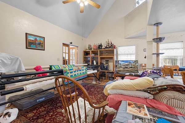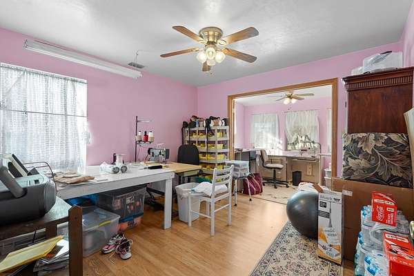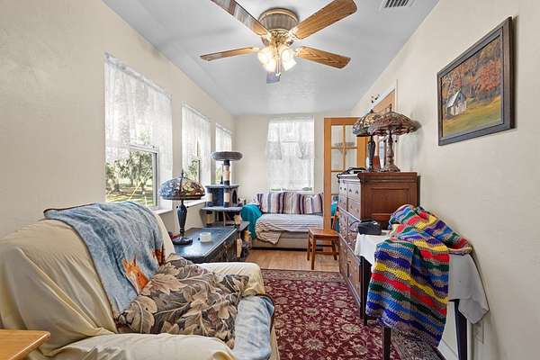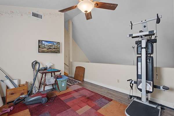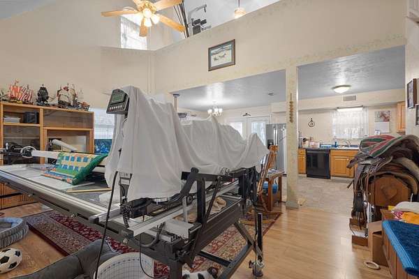 - Blinds, Bonus Room, Ceiling Fans, Den, Gas Range, Living Room, Microwave, Open Floor Plan, Pantry, Washer, Wood Cabinets