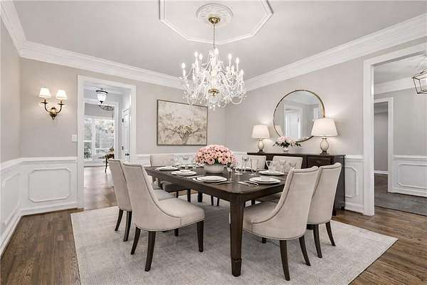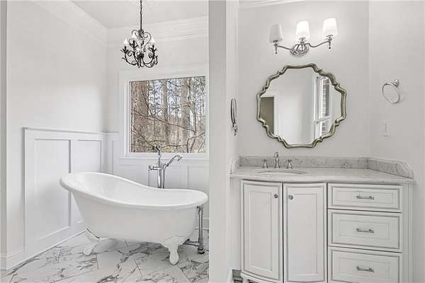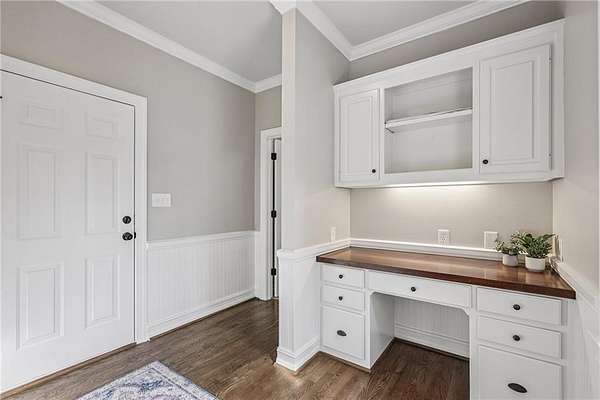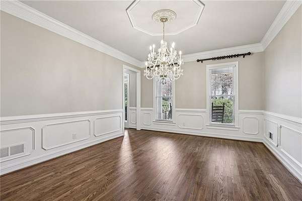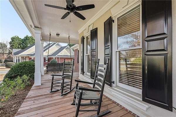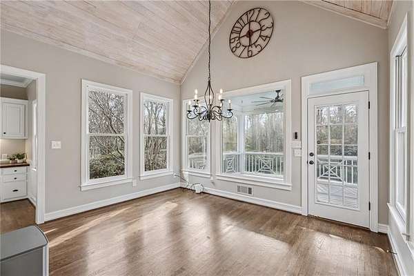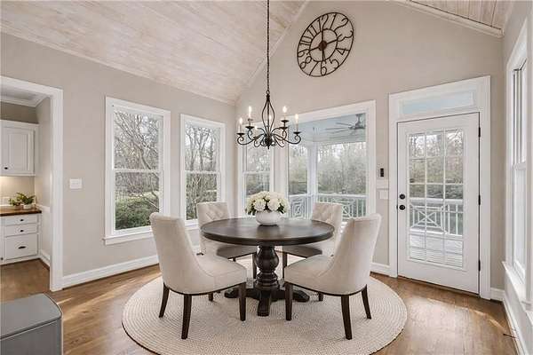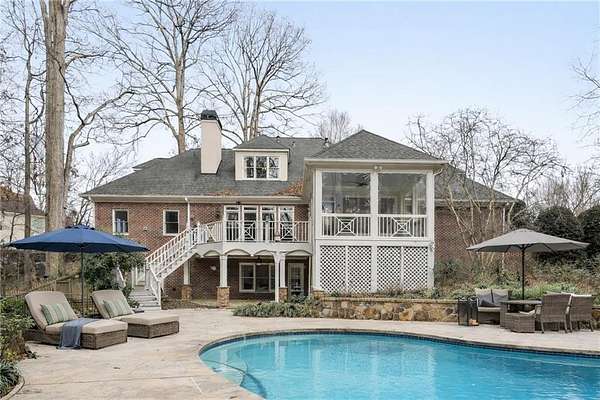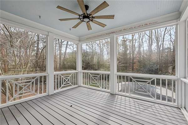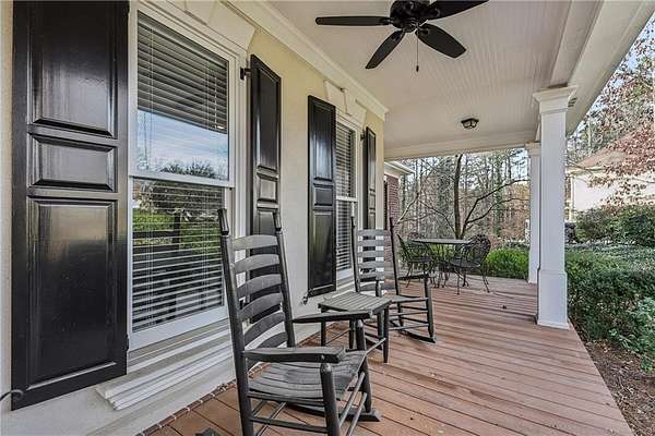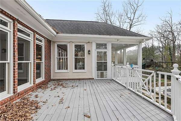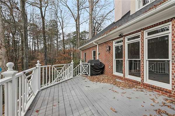 Stunning Southern Living-inspired home is perfectly situated on a private 1.66+/- acre wooded cul-de-sac lot in desirable Northforke Plantation. One of the rare properties offering over an acre of land, this home also backs up to a 2.15-acre HOA-owned preserve, ensuring added privacy and natural views. This custom-built residence offers timeless charm, exceptional privacy, and resort-style outdoor living. The whole house has just been painted in a neutral color. Enjoy a sparkling pool, professionally landscaped grounds, custom swing set, and a serene setting certified as a wildlife sanctuary. Inside, the home features Four bedrooms, 4.5 baths, a chef's kitchen with vaulted tongue-and-groove ceilings, a bright breakfast area, and a beautiful Four-season porch overlooking the backyard. The spacious family room boasts 10-ft ceilings, built-ins, and a brick fireplace. The main-level owner's suite includes a sitting area and updated spa-like bath. Upstairs are 3 generous bedrooms, Two full baths, a bonus room, and a third-level office with panoramic views. The full daylight terrace level walk-out basement offers an incredible entertaining space with a bar kitchenette, a large living space that could be used as a billiard room and theater/family room, full bath, workshop, and unfinished area perfect for an in-law or teen suite. Covered patio with dried-in ceiling provides year-round outdoor enjoyment. Northforke Plantation offers outstanding amenities-clubhouse, swim & tennis, pickleball, and two picturesque lakes. Convenient to shopping, schools, and major highways.