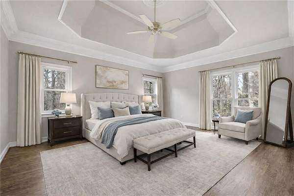 - Bookcases, Disappearing Attic Stairs, Double Vanity, Entrance Foyer, High Ceilings 9 ft Main, High Speed Internet, His and Hers Closets, Tray Ceiling(s), Walk-In Closet(s)