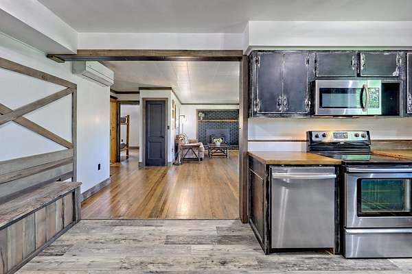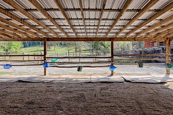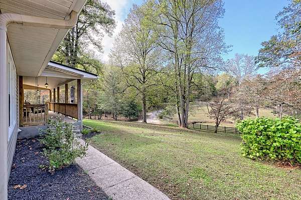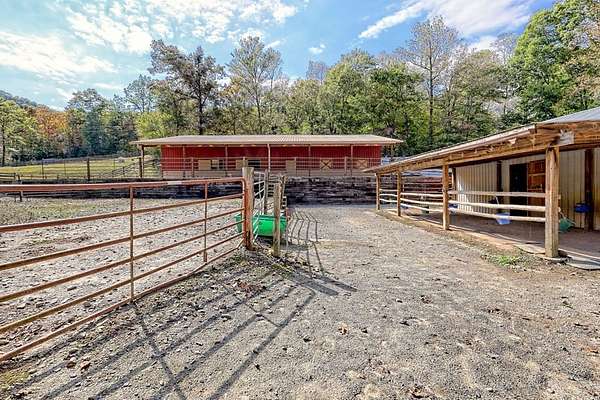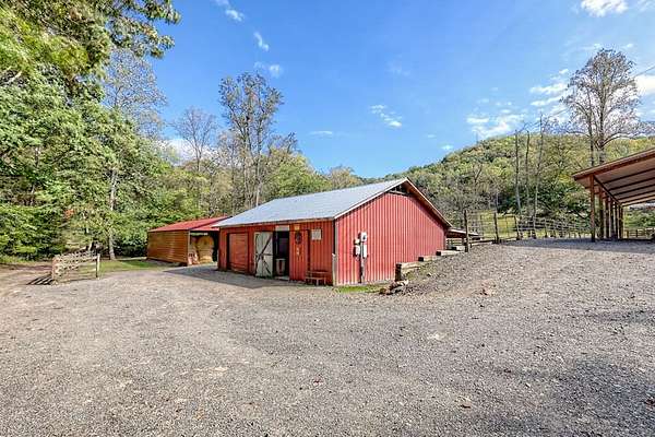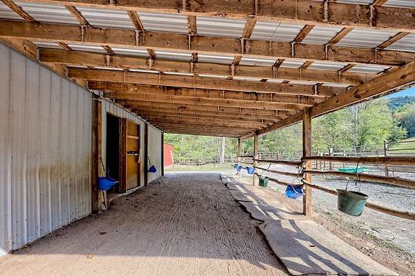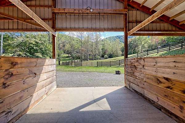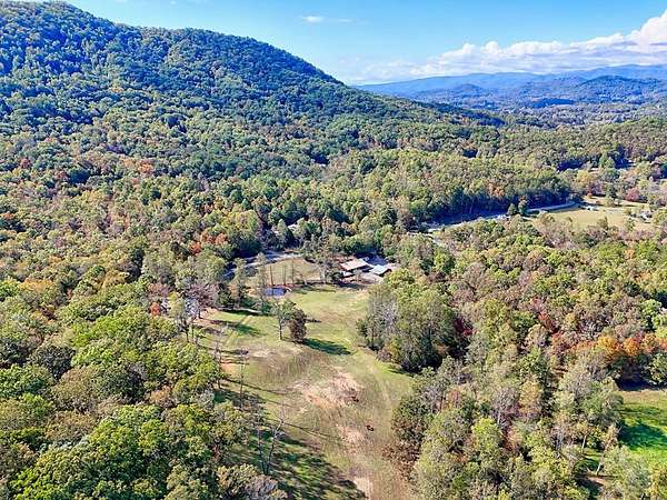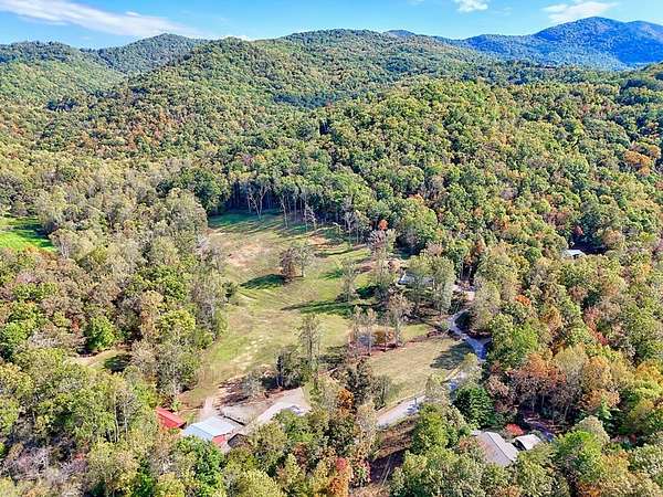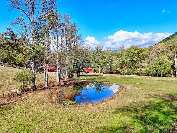 Tucked in the Blue Ridge Mountains of Western North Carolina this stunning retreat offers 55.27 +/- Un-Restricted acres of pristine NC wilderness with pasture, mature timber, private pond, 2 creeks, and bordering the Nantahala National Forest. Access to miles of trails leaving directly from the property for hiking or horseback riding. The main residence is a beautifully remodeled 3 BR/2BA home. Numerous updates including a newer metal roof, updated pex plumbing, fully encapsulated crawlspace, private side patio with a hot tub perfect for star gazing at night, covered front porch overlooking the serene pond in the pasture and long-range mountain views. Numerous outbuildings including a modern 6 stall barn with private modern living quarters. There is also an RV Hookup on site with water, septic and 30 & 50 AMP power. The mountain terrain portion of this property has a graded roadbed for easy access to the top of the property with numerous homesites and spectacular views. A smaller trail for access to the USFS. Located on a paved road with a private driveway, this rare property offers convenience, serenity, and space. This property is truly one of a kind! You will appreciate everything this property has to offer.
