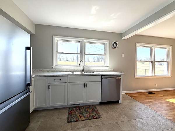 Welcome Home to this updated 5-bedroom, 1.5 bath home situated on 4 cleared acres just minutes from Lawrenceburg and only 15 minutes from Frankfort and 30 min to Lexington. This property offers the perfect blend of modern improvements, usable land, and convenient location. Recent updates include a new roof, water heater, HVAC, paint, windows, doors, siding, flooring, lightning, appliances and updated kitchen and baths, giving the home a fresh and move in ready feel. The exterior features a two car detached garage with a workshop, ideal for hobbies, storage, or equipment, along with a one car attached garage for added convenience. With 4 acres of open, cleared land, the possibilities for outdoor living, recreation, gardening, or future expansion are endless. This spacious home provides ample room for a growing household while offering the peace and privacy of a rural setting with quick access to major amenities, employment centers, and commuter routes. A rare opportunity to enjoy updated living on acreage with the ability to move in and settle quickly.