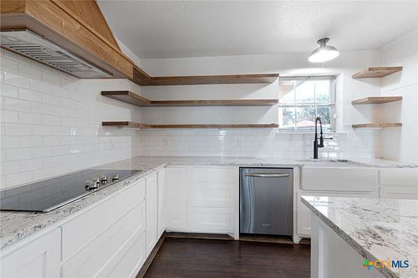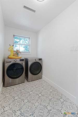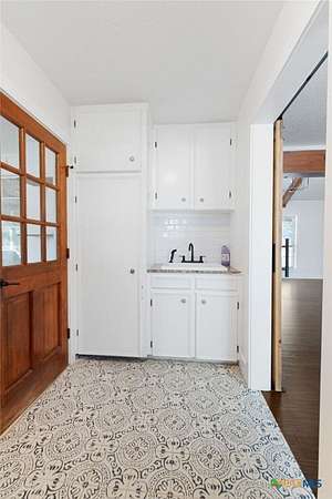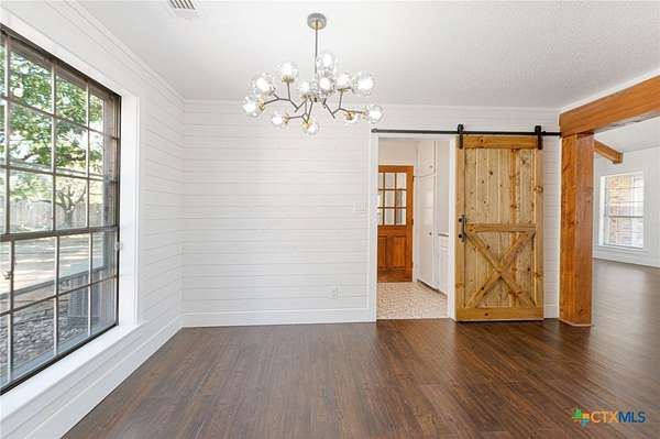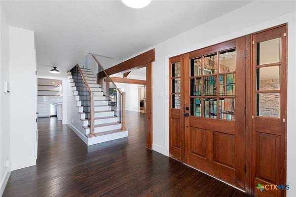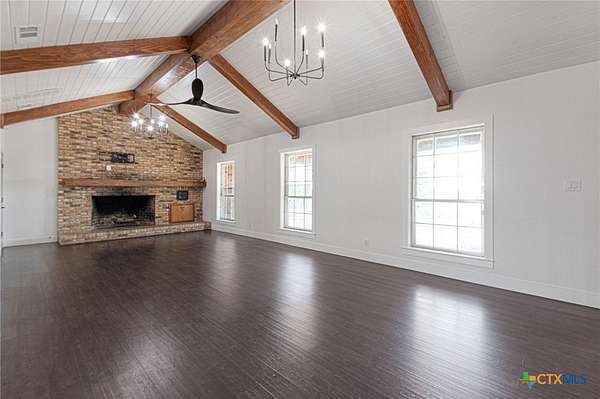 Welcome to 1307 Nix Road - a spacious 2-story brick home set on 2.5 beautiful acres just outside Lampasas. Offering 2,890 square feet of living space, this 4-bedroom, 3-bath property combines modern updates with classic country charm. Inside, you'll find an inviting kitchen and dining area featuring granite countertops, subway tile backsplash, stainless steel appliances, a farm sink, open shelving, and a convenient pantry. The living room showcases luxury vinyl flooring and a striking brick accent wall with fireplace, while the entryway includes a coat closet and stairway to the upper level. Downstairs are two bedrooms, each with luxury vinyl flooring and closets, including one with an en-suite bath featuring granite counters and a tub/shower combo. Upstairs, the spacious primary suite offers two large closets and a stunning bath with a barn door entry, tile floors, granite counters, double-head subway-tiled shower, soaker tub, and wood accent wall. The fourth bedroom also includes two closets and a private bath. The interior utility room is equipped with tile flooring, a sink, and washer/dryer hookups. Outside, enjoy the screened-in porch, covered back patio, and stone walkways leading to an in-ground kidney-shaped pool with a waterfall feature and stone patio. Additional features include a storage/workshop area, asphalt and concrete driveways, and a storage building with a dog or rabbit run. This property offers the perfect blend of comfort, space, and outdoor living - a true Lampasas gem!
