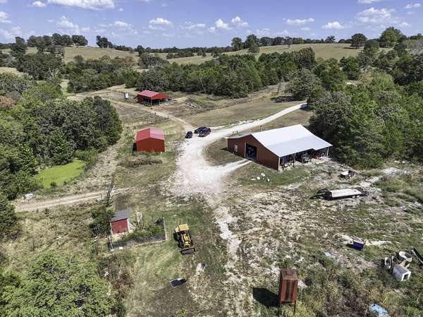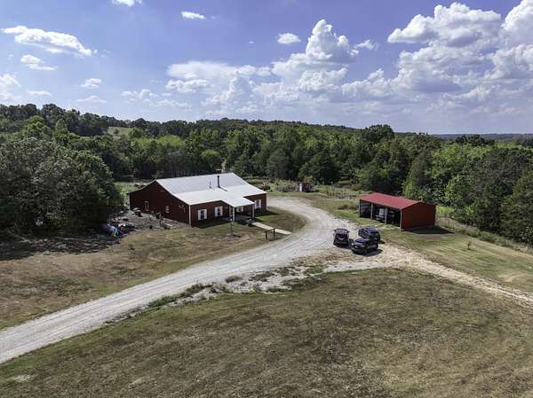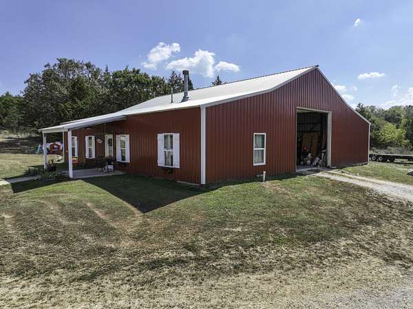 Escape to the country with this exceptional 76 acre hobby farm retreat, offering the perfect balance of rustic charm and modern comfort. Nestled among a mix of woods and pasture and a couple of ponds to enhance the property. This property is ideal for hunting, farming, or outdoor recreation.The centerpiece is a custom barndominium featuring approximately 1,500 sq. ft. of living space with 3 bedrooms and 2 full baths. The master suite includes a walk-in closet, jetted tub and walk-in shower, while the open layout highlights warm, rustic finishes designed for relaxed country living.Outbuildings include a spacious 3-bay machine shop-perfect for equipment or workshop needs-and a functional cattle barn, offering excellent support for livestock or hobby farming. With fertile pastures, wooded acreage, and a tranquil setting, this property provides endless possibilities for recreation, homesteading, or a private retreat