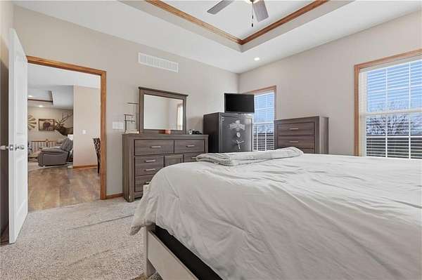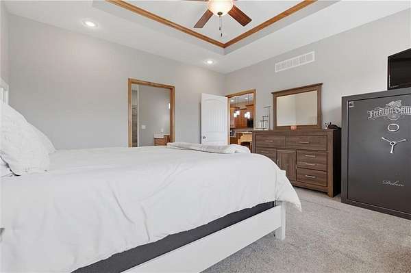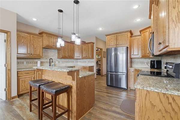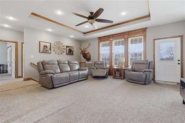 4-bedroom, 3-bath home offering over 3,700 sq ft of living space on 5 acres m/l-your own private escape with room to breathe. Kitchen features granite countertops, ample cabinetry, and an oversized walk-in pantry, designed for both everyday living and entertaining. A fantastic primary suite adds comfort and functionality to the well-designed layout. The full walkout basement expands your living space with a second kitchen, large recreation or second living area, and a potential fifth bedroom-ideal for guests, multi-generational living, or added flexibility. Step outside to a partially covered cedar deck overlooking beautiful wide-open views, or take advantage of the impressive 30x50 outbuilding featuring blown foam insulation, ample electrical service, and HVAC for year-round use. A covered patio off the outbuilding adds even more space for relaxing or entertaining. If you've been looking for space, functionality, and a peaceful setting, this one checks the boxes