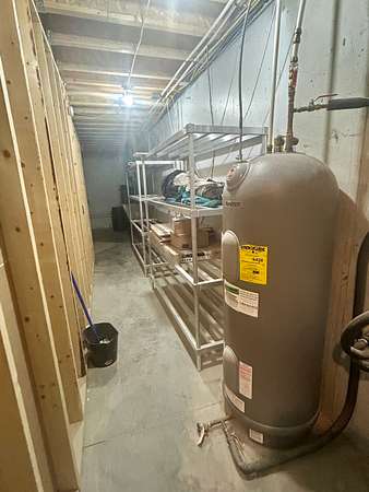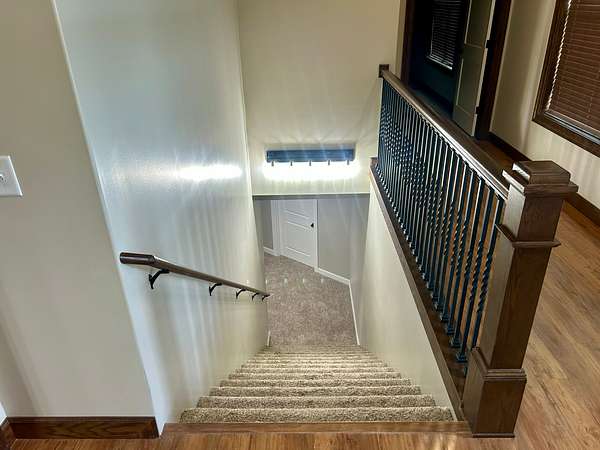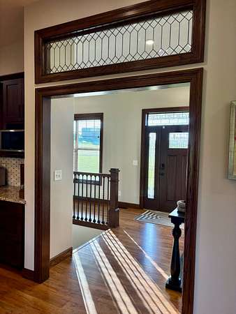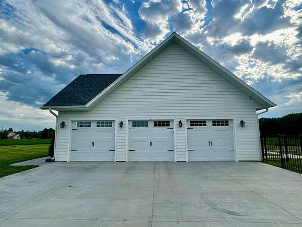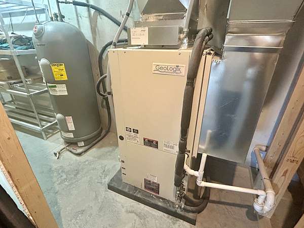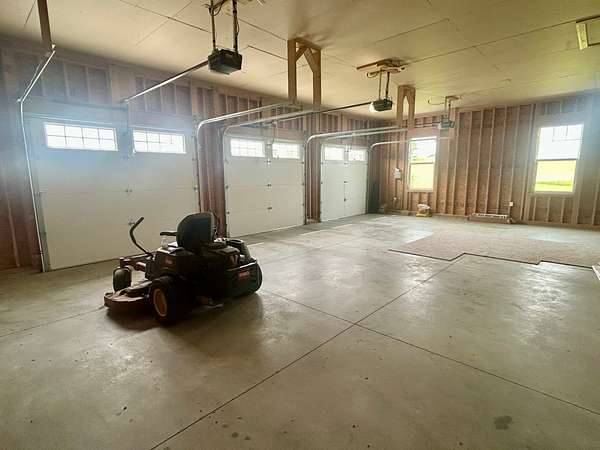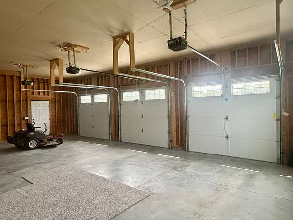 This home was built with long-term quality and efficiency in mind. It includes a geothermal heating and cooling system, upgraded insulation, 2x6 construction, class 4 impact-resistant shingles, insulated garage doors, stamped and stained concrete sidewalks and porches, water softener, and water filtration system. Other upgrades include custom transom windows, a composite covered back deck, a steel rod iron fence, and an underground sprinkler system in the front yard. The oversized three-car garage provides ample space for vehicles and storage.