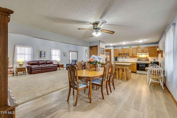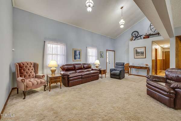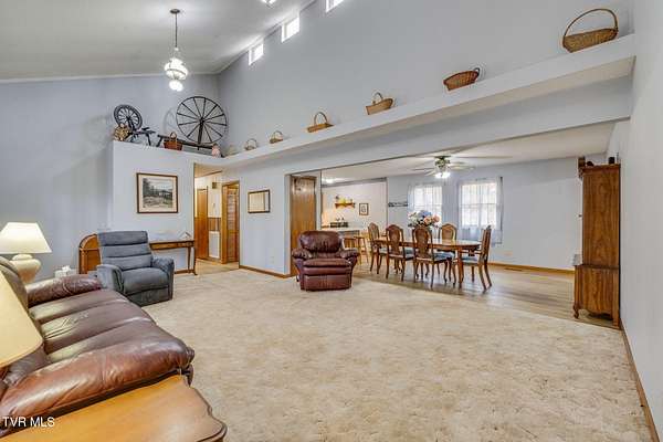 Tucked away in the peaceful countryside of Bristol, Tennessee, this private 23+ acre retreat offers the kind of seclusion and natural beauty that's increasingly hard to find. A gently flowing creek crosses the front of the property, and the land offers a beautiful blend of wooded acreage and open, cleared pasture -- giving you both privacy and usable space to enjoy. A welcoming serene front porch sets the tone for relaxed country living. Inside, the open-concept floor plan feels spacious yet comfortable. The living room features a cathedral ceiling that creates an airy, light-filled gathering space, while the cozy den with custom built-ins offers a warm retreat for quiet evenings or casual entertaining. Luxury vinyl plank flooring runs throughout the main living areas, providing the look of hardwood with durability and easy maintenance -- perfect for everyday living. The sunroom is filled with natural light and offers peaceful views of the surrounding acreage, making it an ideal spot for morning coffee or unwinding at the end of the day. The home also features a large utility room for added convenience, an unfinished basement for storage or future expansion, and a two-car garage. With three bedrooms, two baths, and over 23 acres of beautiful East Tennessee landscape, this property delivers privacy, comfort, and space to truly spread out -- whether you're looking for a homestead, recreational retreat, or simply a quiet place to call home.