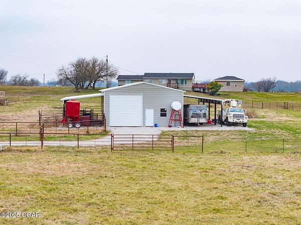 Est $1,344/moThis property is currently used for cattle. It is almost 34 acres with new barbed wire fencing, a large deep pond and creek. There is a working corral and a new building that is approximately 40x30 with water and electricity on the property. There are overhead doors to make it very easy for use. The property would be a very peaceful setting for a homesite. It is minutes from Baxter Springs city limits. The entrance is on the South side on the paved road.