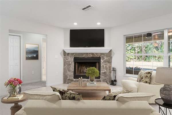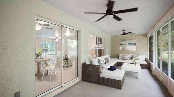 This well maintained custom built home has a split open floor plan with plenty of natural light and 360 degree views. Bedrooms are very spacious with plenty of closet space. Ceiling fans throughout with large stone fireplace to save on electric year round and a 50 year metal roof. A very large screened lanai overlooks the preserve in the back of the property. Keep a thick treeline or thin it out for views of rolling pasture for miles to see. Bring your farm animals, ATVs, or outdoor toys. Large 27'x 36' pole barn with underground electric to house your toys or enclose for a barn. Also onsite is a small shed and a large chicken coup to start your home grown eggs.