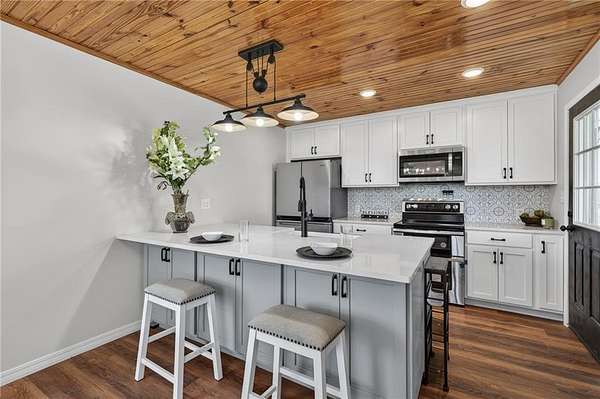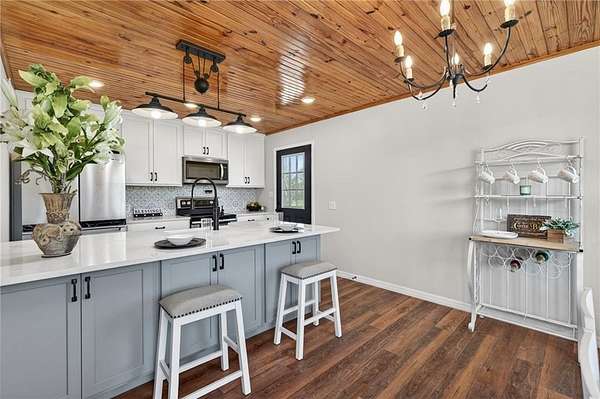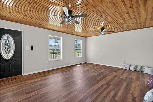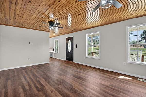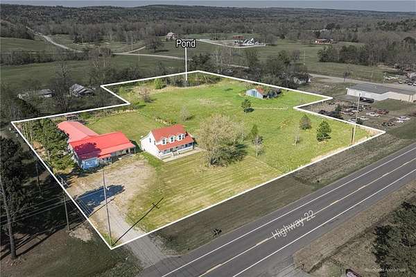 This unique property covers multiple bases to make your dreams come true! It has a charming 1800ft2+two story farmhouse with a full complement of new stainless kitchen appliances, carpets, flooring and bathroom upgrades. A huge front porch across the front of the home provides a broad view of the Ouachita mountains and National Forest. Adjacent to home is a HUGE garage/shop/business building, It includes public entrance, lobby, full bathroom with shower, 5 large overhead doors and expansive interior space. A second parcel adjacent to the east consists of 3+ acres of open pasture grass, small stock pond and functional metal barn. Comfortable home, business potential and possible homestead/hobby farm! This listing covers the full property. Seller willing to split.