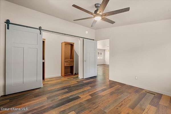 Enjoy low-maintenance country living with breathtaking scenery right from your doorstep. Relax on the year-round enclosed patio overlooking your own seasonal wetlands--a true bird watcher's paradise. Observe bald eagles, blue heron, and a wide variety of woodland ducks in a peaceful, natural setting. In the summer months, the wetland dries, offering the opportunity to hay the property. This fully remodeled single-level 2-bedroom, 2-bath home features 1,456 sq ft of beautifully updated living space, including all-new electrical, plumbing, siding, and high-end finishes throughout. Designed for both comfort and entertaining, the home boasts a wide-open layout with spacious living areas and two large primary suites. Each primary suite offers its own luxury retreat--one featuring a huge custom shower with dual shower heads, and the other a deep soaking tub--both complemented by walk-in closets with barn doors, dual vanities, and quality finishes. all situated on 10.79 private acres. The gourmet kitchen includes new appliances, cherry alder soft-close cabinetry, butcher block countertops, a range hood, and a pantry, flowing seamlessly into the main living space with new laminate flooring throughout. Additional highlights include a 27'x12' enclosed porch for year-round enjoyment, a 24'x36' insulated shop, and a 36'x48' barn with a 12' door, breezeway, and lofts--perfect for hobbies, storage, or livestock. The property's natural setting attracts abundant wildlife including elk, deer, turkey, waterfowl, and even occasional moose. Located just minutes from a public boat launch, beach, and park, you'll enjoy easy access to fishing, boating, paddleboarding, and more.
