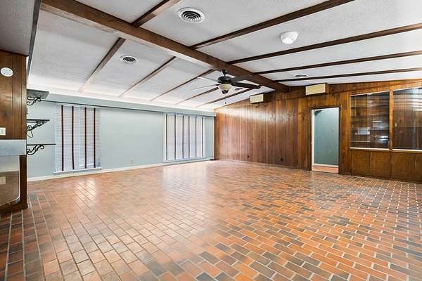 - Blinds/Shades, Ceiling Fan, Ceiling Fans, Paneling, Smoke Alarm, Sound System