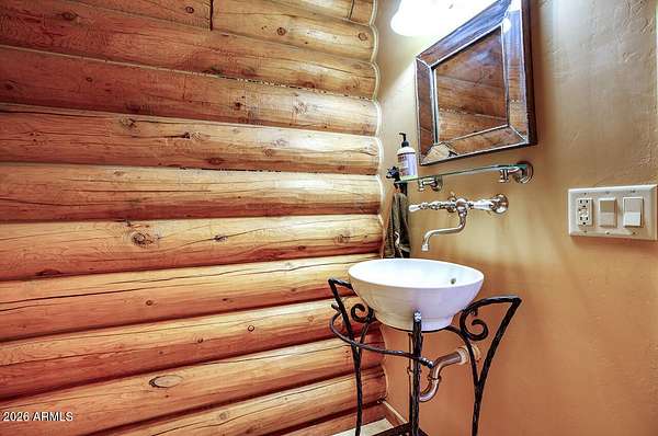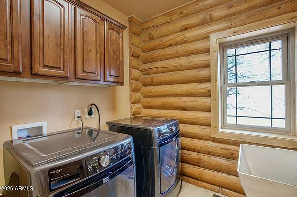 Genuine log cabin in the tall pines of Parks, AZ on 5 private wooded acres. Easy access just off I-40, yet tucked away in peaceful forest surroundings. Less than 20 minutes to Flagstaff, 40 minutes to Arizona Snowbowl. Comes fully furnished and ready to go! Inside, immense vaulted ceilings and a warm gas fireplace anchor the great room, while double French doors open to an expansive covered deck perfect for relaxing or entertaining. Gorgeous kitchen features granite counters and stainless steel appliances. Spacious primary suite on the main level with split floor plan. Bonus room, laundry with sink, tiled showers throughout. Fully furnished including pool table, TVs and deck furniture--move-in ready mountain retreat. Ideal full-time home, vacation getaway, or turnkey short-term rental use. Many of the furnishings were custom made for this cabin. Property is an hauled water--serviced by a 2500 gallon tank. Leased propane tank from AmeriGas provides gas to various appliances. New furnace installed in 2020. Water pressure tank and pump were replaced in 2018 and new deck railing was installed in 2026.