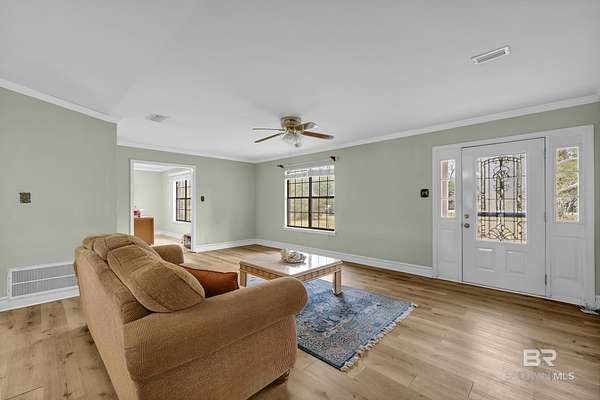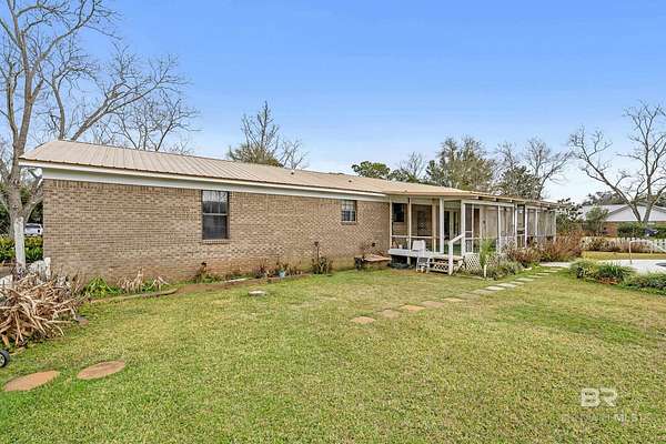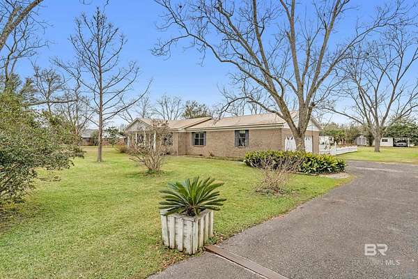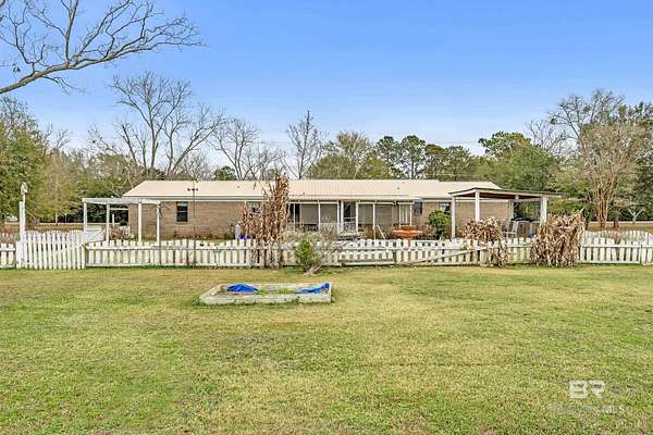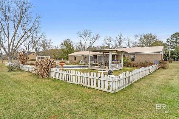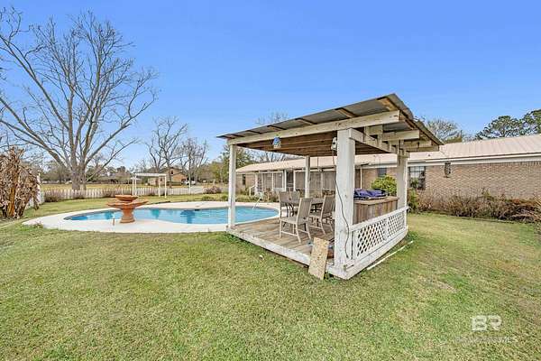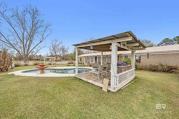 PLEASE READ THOROUGHLY! The SUBFLOORS need to be replaced! The pool components work but have been turned off for the winter freezes. Brick, pool home on 1.5 cleared acres with NO HOA--an ideal fixer-upper with good bones and room to add value. This 3-bedroom property offers 2 full baths plus a half bath, a spacious primary suite, and an open great room combining the kitchen, dining, and living areas with lots of natural light. The kitchen features granite countertops, a gas range, and a stainless-steel refrigerator. Outside, enjoy a Gunite in-ground pool and exceptional utility space with a workshop/barn/pole barn--perfect for equipment, hobbies, storage, or small-scale homesteading. The 4-year-old metal roof adds peace of mind. The land is a standout: pecan trees, blueberry bushes, orange and pear trees, multiple vegetable gardens, and well-established flower beds showcasing purple and white hydrangeas, ginger lilies, lilies of the Nile, daffodils, rose bushes, and canna lilies. Investor and DIY buyers will appreciate the upside. Subflooring needs replacement due to improper installation of LVP flooring, and the bathrooms are ready for updating--a strong opportunity to customize and build equity in a rural setting with space, privacy, and mature plantings. Make note this home is located just 3 miles from the Big mouth where Weeks Bay flows into Mobile Bay-ideal for fishing, just 2 miles from the Weeks Bay Bridge Boat Ramp, and about 1 mile from Mary Ann Beach Park- where you can enjoy Mobile Bay beach, kayaking and swimming. Buyer to verify all information during due diligence.