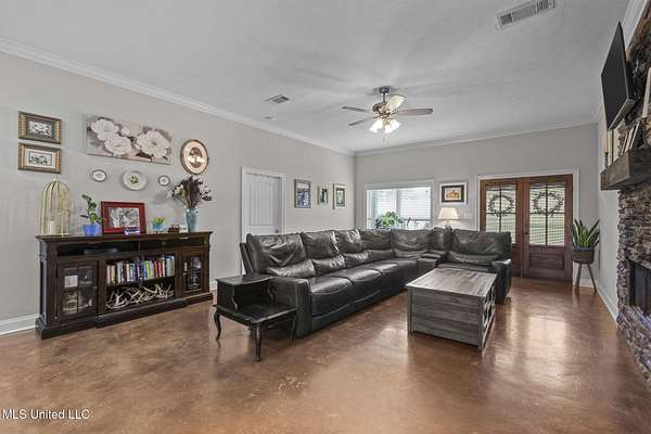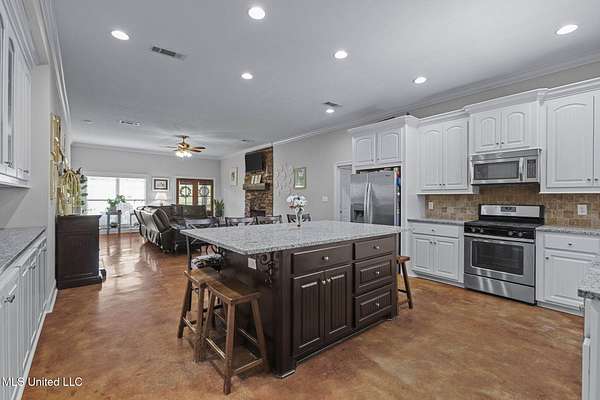 Nestled on 5 +/- peaceful acres, this beautifully designed 3 bedroom, 3 bath home with approximately 2,144 square feet was built in 2016 and offers the perfect blend of comfort, space, and country charm. Step inside to a spacious open floor plan that seamlessly connects the living room and kitchen-ideal for entertaining or cozy family gatherings. The living area features a stunning stone fireplace that adds warmth and character. The home features a beautiful kitchen with a spacious breakfast bar and plenty of cabinet space-perfect for cooking, entertaining, and everyday living. Enjoy large bedrooms with plenty of natural light, providing a relaxing retreat for everyone in the family. Outside, unwind on the inviting front porch or entertain guests on the rear patio, both perfect for enjoying the tranquil surroundings. The home comes equipped with a generator, offering peace of mind and uninterrupted comfort during power outages. Take advantage of living on 5 acres+/- where you could enjoy wildlife and hunt right from your back door. You can enjoy the convenience of being just minutes from Highway 49, making it easy to get to Madison, Clinton, or the Jackson Metro area. If you're looking for a peaceful escape from the city, this property offers room to roam and plenty of potential. Call today to schedule your private showing!