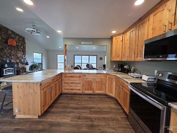 Newly updated with all New Flooring, Interior Paint, Light Fixtures. Gourmet kitchen with custom cabinets, stainless GE appliances, granite countertops. Open floor plan with stone fireplace with wood burning insert, floor to ceiling windows with views of Clearwater River and Valley. Spacious living room and dining area. Two bedrooms on the main floor with a full bath granite countertops and custom cabinets. The walk out basement has stone fireplace with pellet stove insert. Huge family room, 3rd bedroom, full bath and extra-large storage/laundry room. Covered Trex deck off the main level living space with wraparound deck at the front of the house. Two manicured acres with a plenty of space for a garden. 40x48 Shop with 14-foot doors loft for extra storage, built in work bench, propane heat, half bath and finished room that would make a great office space or reloading room. 13x48 lean too, two RV hook ups, private Well and Septic. Move in ready just unpack and your HOME!