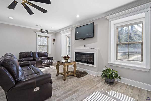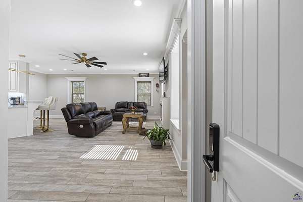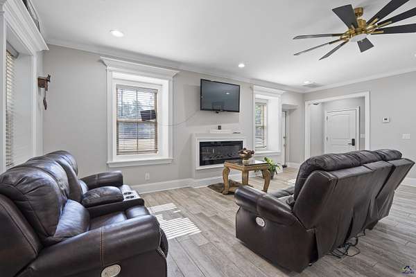 Discover country charm with modern living at 131 Ben Edwards Rd! This custom-built barndominium sits on a beautiful 1.7-acre lot—tucked away for privacy, yet just minutes from shopping, dining, and everyday conveniences. A gorgeous inviting driveway with brick and wood landscaped fencing and gate welcomes you home. Gated entrance and fence is lighted at night. The main level features a spacious 4000', 20+ ceiling height, three roll up doors, foam-insulated garage with an office and half bath, overhead lighting and speakers—perfect for working from home or running a small business. The options for this space are endless. Inside, you’ll find an open and airy living area with abundant natural light, a gorgeous kitchen with granite countertops, raised bar, and plenty of cabinet space. The primary suite is conveniently located on the main floor and includes a full bath for comfort and ease. Living area downstairs with spacious open floor plan including electric fireplace. Home is serviced by tankless water heater. Upstairs, enjoy a large second living area along with three generous bedrooms and two full baths. This property blends functionality, comfort, and style—offering the perfect retreat with room to grow! Don't miss out on the opportunity to own this one of a kind property. Schedule your showing today.