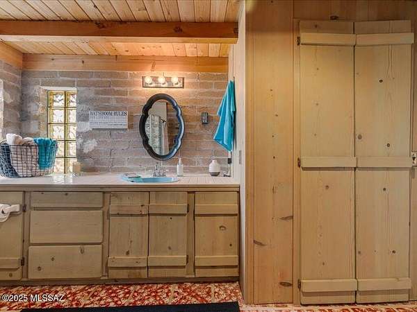 Unique property, Orginal structure was part of the historic dude ranch from the 40's. The home has been added on to several times since. The rooms are bright with lots of windows. Beam ceilings, remodeled Kitchen, steam shower, Great outdoor spaces both front and back, Covered RV storage, Enjoy the hot tub under the stars in your private back yard retreat. Close to Sonoita Business district and wineries. Make a great B&B or Primary residence. Electric fireplaces do not Convey.
