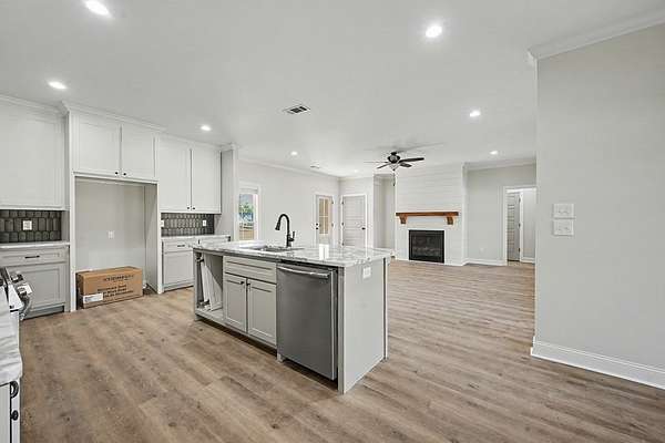 ~ NEW CONSTRUCTION IN POPULAR BRITTANY LAKES SUBDIVISION ~ WEST LEE COUNTY ~ HUGE LOT - 1.83 ACRES ~ PRIVACY GALORE ~ This floorplan includes 1,814 sq ft of living space, 3 bedrooms and 2.5 baths! The family room is very spacious, has a fireplace and is totally open to the dining and kitchen area! The kitchen has lots of counterspace, a large island w/ a breakfast bar seating, loads of countertop space and quartz countertops! A great split bedroom design! The large master suite with walk in closet, a couple vanity, a freestanding bathtub and a tiled shower w/ glass surround! All bedrooms are nicely sized! Additional upgrades include crown molding, quartz countertops throughout, upgraded lighting and plumbing fixtures, covered front and back porches, 30-year architectural shingles, all low maintenance hardi plank exterior, double pane windows, extra insulation for super energy efficiency! Situated on beautiful lot in an excellent location!