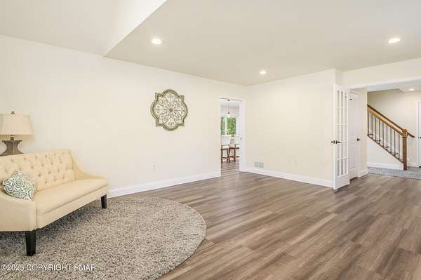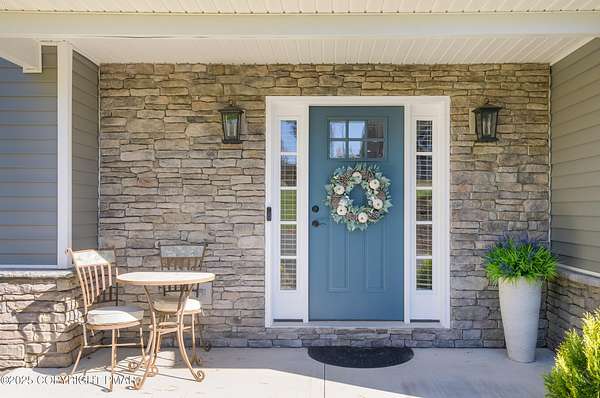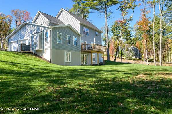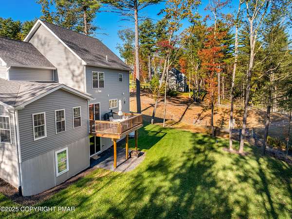 Completed in 2022, this modern Colonial offers luxury living. This home has been meticulously cared for. Set on 1.74 private acres, this 4-bedroom, 2.5-bath home features a bright, open-concept main floor with luxury vinyl flooring, granite countertops, a tile backsplash, farmhouse sink, gas cooktop with stainless hood vent, wall oven, and a walk-in pantry. The living room impresses with cathedral ceilings, a gas fireplace, and expansive windows that fill the space with an abundance of natural light - so much that you could spend the entire day inside without ever needing to turn the lights on. The sunlight streaming through creates a warm, inviting atmosphere and highlights views of the peaceful backyard. A versatile room on the main level offers the perfect spot for a home office, playroom, or additional living space. Upstairs, the primary suite is a true retreat with a walk-in closet and a spa-inspired ensuite featuring dual sinks and a tiled walk-in shower. The finished third floor provides an ideal fourth bedroom or bonus room, while the walk-out lower level offers endless potential for future expansion. Step outside to a private deck - the seller's favorite place to relax and enjoy the quiet surroundings. This is not your typical HOA: you can ride golf carts and scooters, kids can easily walk to friends' homes, and the bus stop is conveniently located at the cluster mailboxes. The neighborhood is known for its friendly community vibe - even handing out full-size candy bars on Halloween - and is just minutes from ShopRite, local restaurants, schools, and everyday conveniences. Don't be intimidated by the size of this home - it's impressively energy-efficient. Despite its spacious layout, you'll be pleasantly surprised by how low the monthly utility costs are, making luxury living both comfortable and affordable. Families will love the location - Intermediate and Elementary Schools are just 4 minutes away (yes, we timed it!), while the Middle School and High School are only 9 minutes away. Come take a look to see this in person.