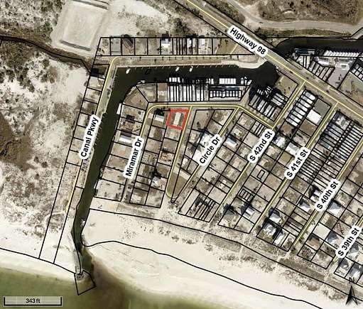 Traveling East on Highway 98, turn right onto 42nd St, right onto Miramar Drive and property is located on the west corner of the west intersection of Circle Drive and Miramar Drive.
