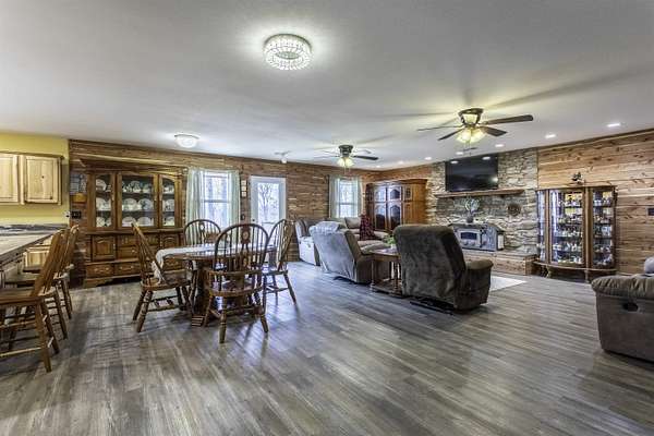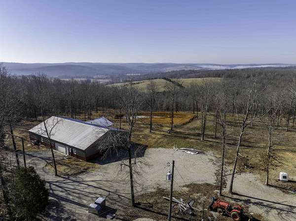 101 Acres in Sharp County, AR – 2023 Barndominium with Shop, Ponds & Mountain Views Private recreational homestead in the Ozark Mountains featuring a 4,000 sq ft spray-foam insulated barndominium built in 2023. Approx. 2,000 sq ft heated and cooled living space plus 2,000 sq ft insulated shop w/ wood stove. The home offers 2 bedrooms, 2 baths, open concept kitchen (14x17), living & dining (25x22), pantry 4'x6', spacious primary suite (15x25) with large walk-in shower, oversized closet and laundry room. Central HVAC with backup wood insert. Situated high on 101 wooded acres with breathtaking vista views overlooking pasture and timber. Land includes 2 ponds, wet weather creek, prime deer & turkey hunting, rolling terrain and ATV trails. 12x30 covered front patio and 40x30 pole barn (2 sides enclosed). driveway off paved highway—easy access with total privacy and no road visibility. Ideal Ozark recreational property, hunting land, or rural homestead.