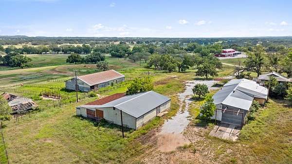 Est $25,904/mo46+ acre unrestricted acre commercial opportunity situated in the center of the wine trail. Highly visible property with road frontage on three sides: ~1,000 feet of Hwy 290 frontage, ~2,000 feet of RM 1 frontage, and ~350 feet of county road Elberta. Community water at street on multiple sides, CTEC 3 phase and standard electric service in multiple locations across property, 2 water wells, large oaks, big views, diverse topo, ag exemption, large barns and buildings provide the opportunity to repurpose for a variety of uses. Easily divisible for future development. Agent has ownership in property.