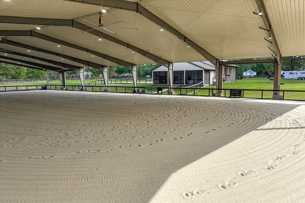 Rare opportunity in Three Runs Plantation-exceptional 5.03-acre equestrian property with premium riding amenities and room to expand. Ride year-round in the expansive 120'x200' (24,000sf) covered arena featuring two Big Ass Fans, lighting, and irrigation. The property includes an 800sf cottage with ceiling fans and a tankless gas water heater-perfect for immediate use or guest accommodations. A 1,600sf concrete slab is ready for future expansion of the living space or barn additions. Enjoy the privacy of your own riding obstacles and access to over 30 miles of community trails, arenas, and training facilities. A true turnkey equestrian setup with unlimited potential for customization. Three Runs Plantation is a community of 2,400 acres, with 30 miles of riding trails, Clubhouse, Community Pool, Activity Center with Fitness Room, Dressage Arenas, Jumping Arenas and X-Country riding areas.