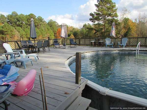 Nestled on 5 beautiful acres, this 2120 sq ft home offer the perfect blend of privacy, nature, and comfort. Featuring 3 bedrooms and 2 full bathrooms, large master closet and cozy wood walls. The home is located on a quiet dead-end road, ensuring a peaceful, secluded lifestyle with minimal traffic. There is a new 20ft above ground pool with a large deck for swimming and sunning and a stocked 1 1/2 pond that serves as the center point of the property-ideal for fishing, wildlife watching, or simply enjoying the scenic views from the large front and side porch. Mature trees provide plenty of shade, serenity and a sense of being tucked away in nature. Whether you are looking for a quiet retreat or a place to enjoy outdoor living, this property delivers and unmatched feeling of tranquility and space.