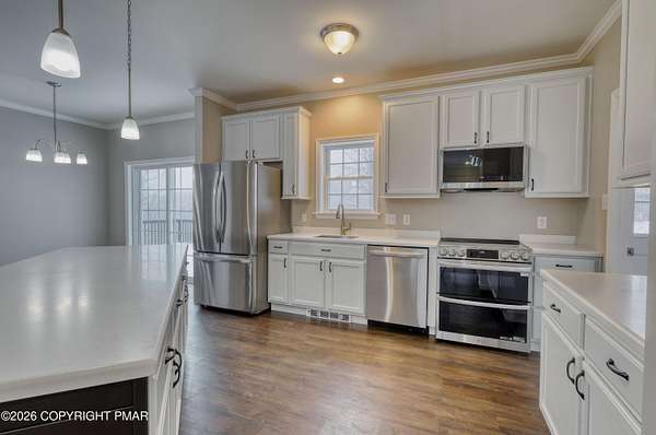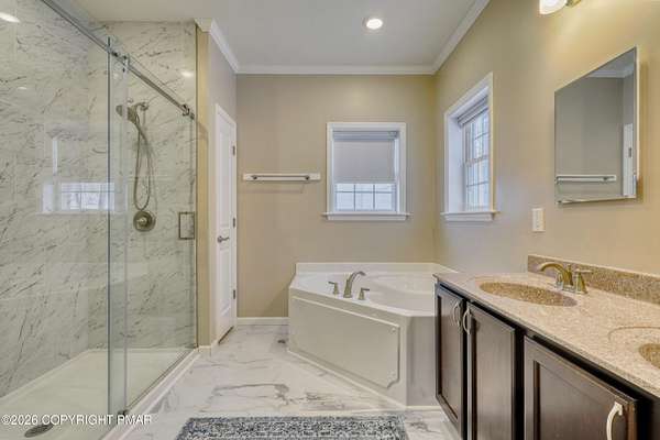 - Crown Molding, Double Vanity, Eat-In Kitchen, Granite Counters, Kitchen Island, Open Floorplan, Pantry, Recessed Lighting, Soaking Tub, Walk-In Closet(s), Wired For Sound