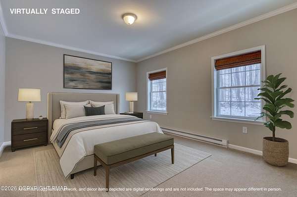 Est $3,098/moBuilt in 2024 this ultimate modern retreat is situated on 2.77 acres! This home features an ultra-modern kitchen, a primary suite with jacuzzi tub/glass sliding doors, and a spectacular finished basement. Enjoy the Rec Room with built-in theatre seating platforms, projector, and sound system ready. Radiant heating system, large rear deck and ample driveway parking complete this must-see property. Murphy Bed & custom built-in shelving in Bedroom 5/office. Recreation room can be used as a large home theater or full scale golf simulator! Call to schedule a private tour!
