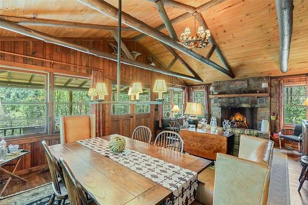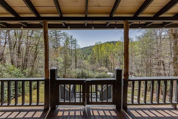 Tucked away at the end of a quiet road in historic Horse Cove, this charming 2-bedroom, 2-bath cottage sits on two lots totaling 2.47 acres and borders over 730 acres of U.S. Forest Service land-offering unmatched privacy, scenic hiking trails, and endless outdoor exploration. Thoughtfully updated, the home features elegant hardwood floors, rustic beamed ceilings, and a cozy fireplace in the Great Room. The interior is tastefully furnished, blending mountain charm with modern comfort. A covered rocking chair front porch offers sweeping mountain views, while an additional open deck with an outdoor fireplace is perfect for entertaining or relaxing under the stars. The second lot offers incredible potential for future expansion or a guest cottage. Located just 3 miles from downtown Highlands, this property provides easy access to Whiteside Cove, the Iron Bridge, Secret Falls, and nearby Cashiers-making it the perfect base for your mountain lifestyle.