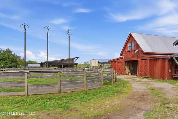 This exceptional 131+/-acre farm in Marshall County offers a blend of quality improvements, natural beauty, and long-term value all in a sought-after location. Just 30 minutes from Oxford and the University of Mississippi, 10 minutes from Holly Springs, and within easy reach of Olive Branch and Collierville, the property delivers both convenience and privacy. At the center of the property is a thoughtfully designed 7-stall barn, complete with a tack room and adjacent feed room. Above the barn sits a 2 bedroom, 1 bath apartment providing a comfortable and refined living space. Featuring maple hardwood floors, granite countertops, and a travertine marble bathroom, it's perfectly suited for weekend stays, guest accommodations, or a primary residence while planning a future home site. The land itself is equally impressive, with approximately 60 acres of pristine fenced and cross-fenced pasture ready for immediate use. Two well-maintained lakes (approximately 10 acres and 5 acres), stocked with bass and bream, serve as standout features with decks and a boat hide in place. Additional storage buildings offer ample space for equipment and operations. With over 3,000 feet of road frontage spanning Laws Hill Rd, Mt. Peel Rd, and Hardin Rd, the property also presents accessibility and potential for future division or investment. The remaining acreage consists of 25-30 year old pine timber, providing recreational use, privacy, and long-term timber value. Properties of this caliber offering both high-quality improvements and substantial acreage in such a convenient location are increasingly difficult to find. WILL DIVIDE