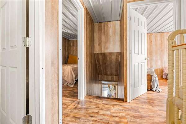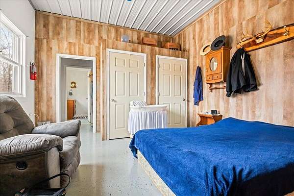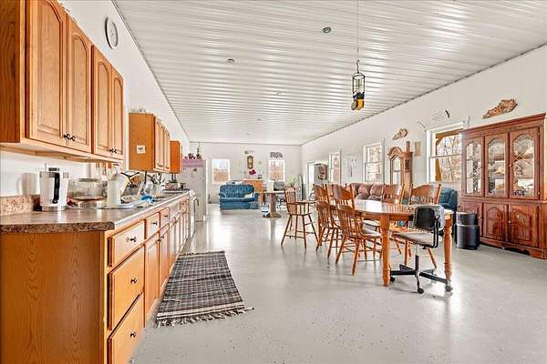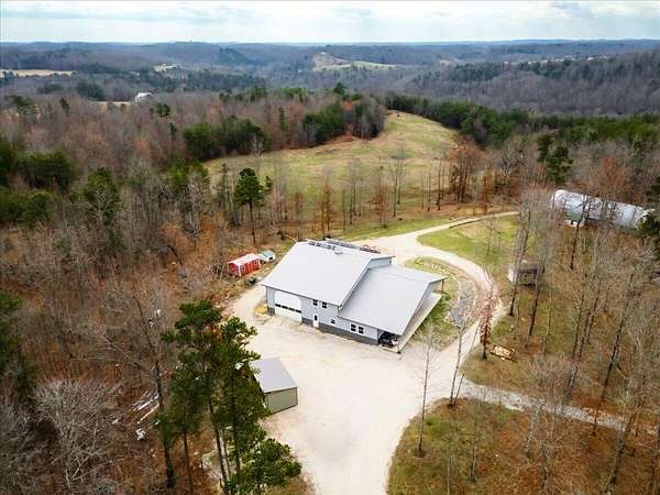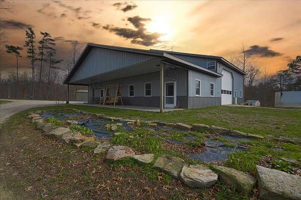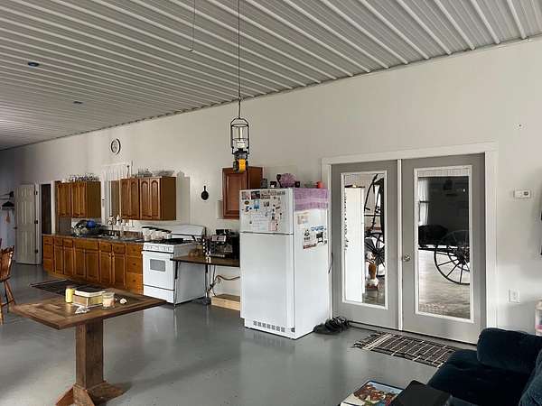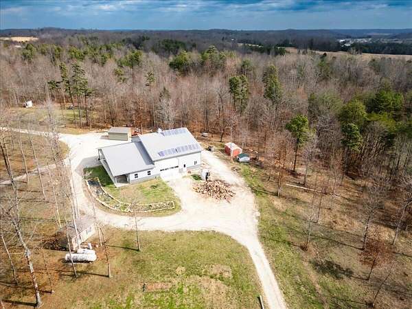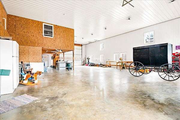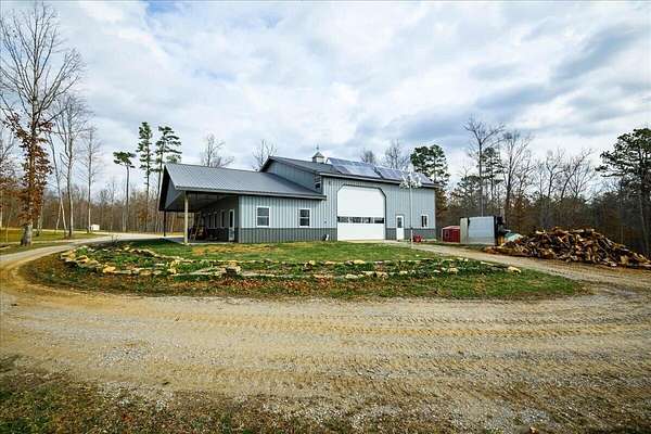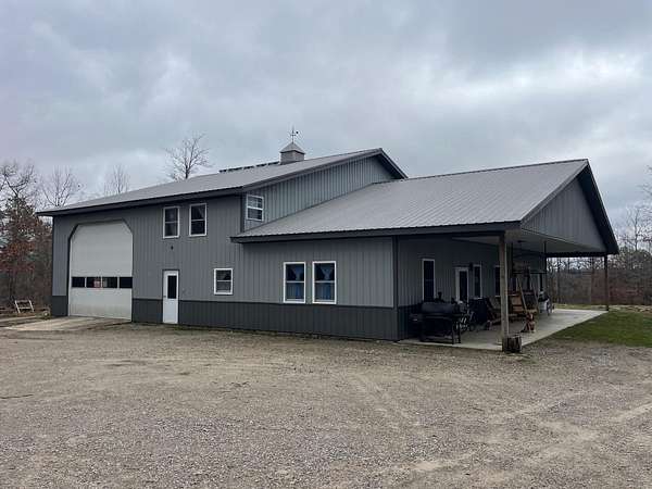 If you're looking for privacy and room to grow, this is it. Beautiful Amish home located on 30 acres with pond, and a fenced pasture for horses and cattle. The steel sided 4 bed, 2 bath, barndominium is wired for solar electric with an open concept 1st floor. The home has a wood burning radiant heat system running throughout the poured concrete floors. 1 Bed and 1 full bath are located downstairs, with an additional 3 beds and full bath upstairs. Attached to the home is a 40 x 60 garage/workshop with a sixteen foot ceiling, and a large bay door on each side. In addition, there is a separate 970 sq. foot cabin on the property that is not currently being used, but would make a great AirBNB or separate accomodations for extended family. At the edge of the pasture is is a 32x72 ft. hoop barn for animals and hay storage. This property is also blessed with a spring fed pond nestled in the woods at the end of the pasture. This is a quiet and secluded property at the back end of an Amish Community, complete with wild turkeys and deer.