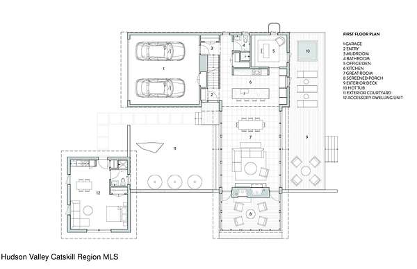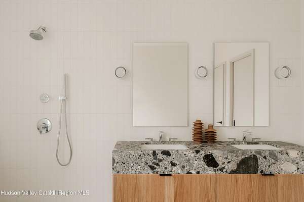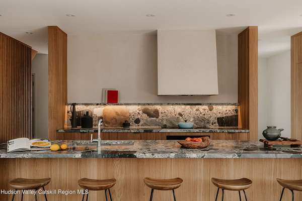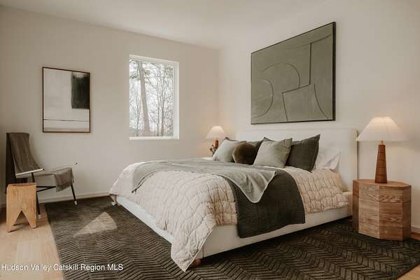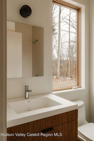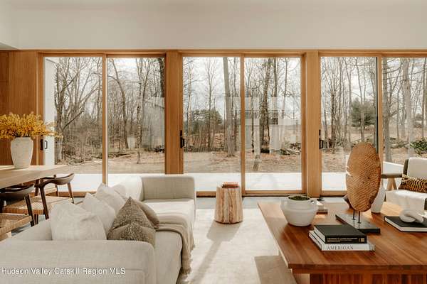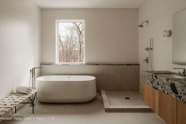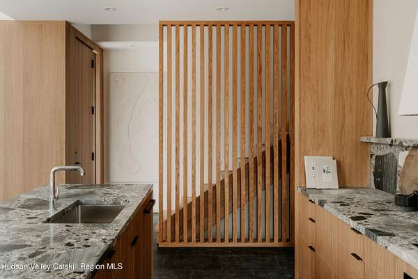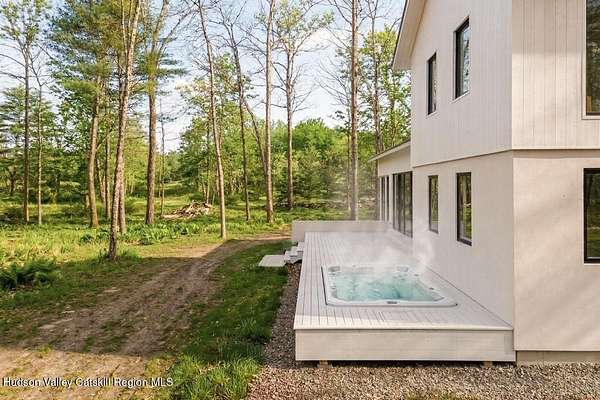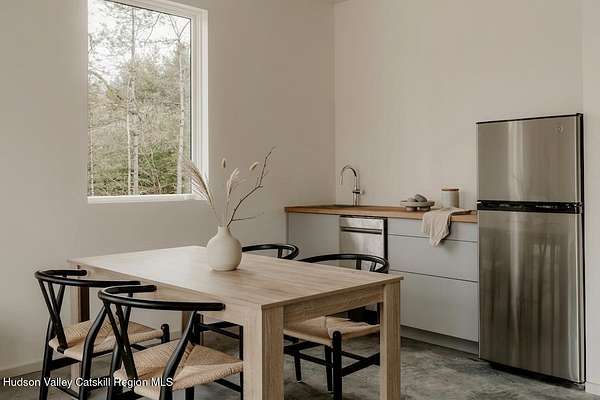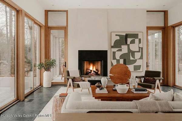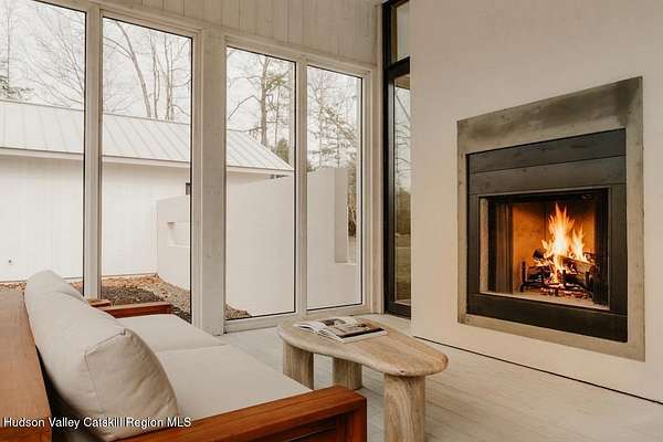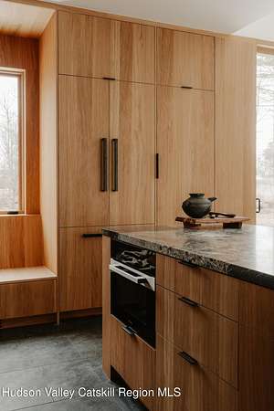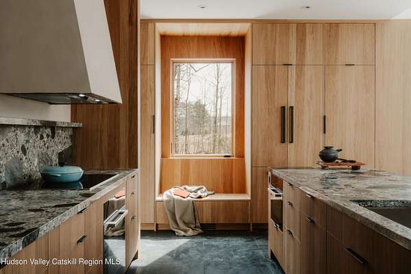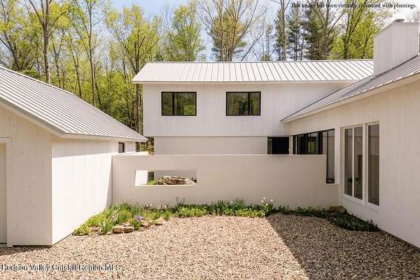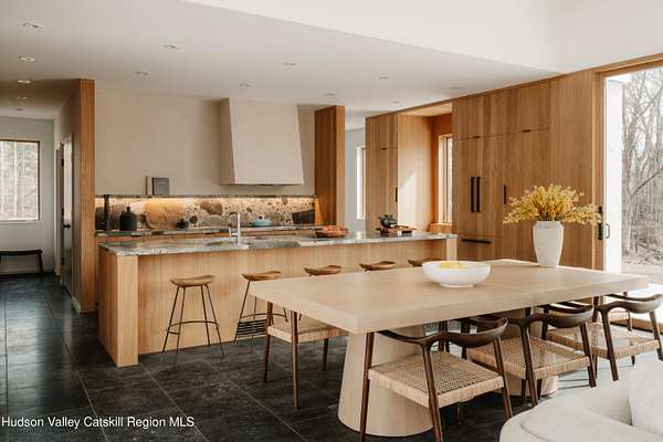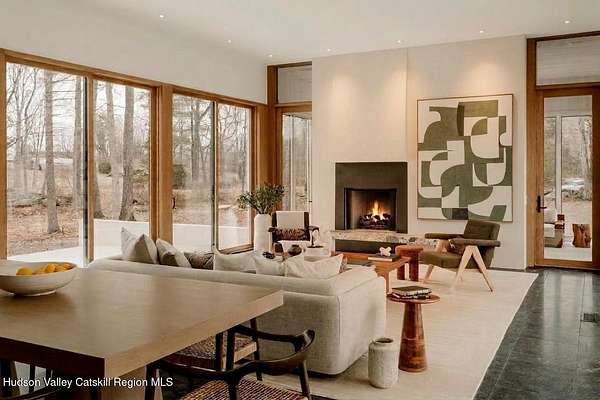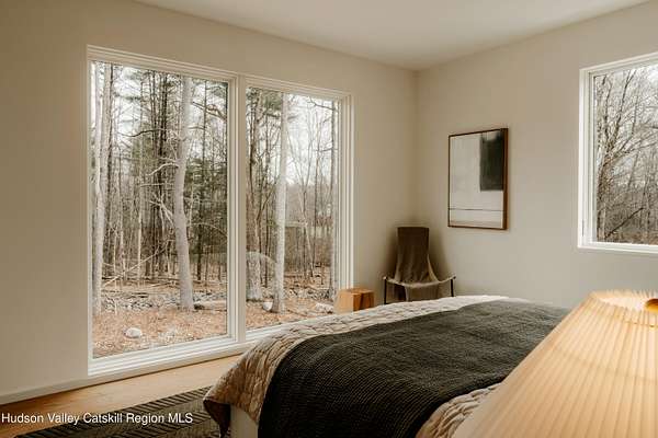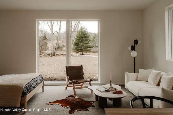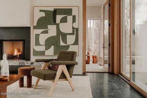 Welcome to The Oakley. Tucked along a quiet bend in one of Accord's most picturesque country roads, this newly built residence feels like stepping into another era, one defined by timeless beauty, quietude, and a deep connection to the land. Sited on four private acres that blend open meadow and mature forest, the home is introduced by a long driveway that winds through grassland and past a serene pond bordering the property. Inside, the home is a masterclass in high-performance luxury, with every material, finish, and mechanical system carefully chosen for both form and function. The main level offers a seamless flow of living spaces anchored by a sleek, design-forward kitchen featuring custom white oak cabinetry, Ceppo Di Gre stone countertops, and integrated Miele appliances, including a coveted speed oven. A central wood-burning fireplace adds warmth and texture, while Belgian bluestone floors span the entire level. A versatile first-floor flex room with access to a full bathroom offers flexibility as a guest suite, office, or scullery, allowing the home to adapt to a variety of living styles. Upstairs, seven-inch-wide Mirage engineered oak flooring runs throughout. Three light-filled bedrooms, each with its own en suite bath, offer both privacy and comfort. The primary suite is particularly well-appointed, featuring an oversized bath and a generous walk-in closet. A conveniently located laundry room and ample storage complete the upper level. Outdoor living is equally considered. A cedar screened porch with a second wood-burning fireplace extends the living space into the landscape, while a six-seat Jacuzzi offers year-round relaxation in a private, natural setting. Just beyond the main residence, a fully entitled accessory dwelling unit provides a private one-bedroom suite with a kitchenette, bathroom, and its own GE appliances, ideal for guests, rental income, or studio use. Sustainable, stylish, and rooted in place, the home is built to exceed expectations. A high-performance building envelope with R35.5 walls and an R60 roof, standing-seam metal roofing, cedar siding and decking, and a ground-source heat pump system by Dandelion Energy ensures efficiency without compromise. Additional features include a two-car garage, an unfinished basement that can be finished as a den, gym, or theater, and an enclosed courtyard that completes the offering. Framed by classic red barns, rolling farmland, and orchards, the surrounding landscape evokes a pastoral elegance rarely found in modern life. Moments from Inness, Arrowood Farms Brewery, and the creative communities of Accord and Stone Ridge, this property represents a rare convergence of modern design, rural tranquility, and cultural richness.