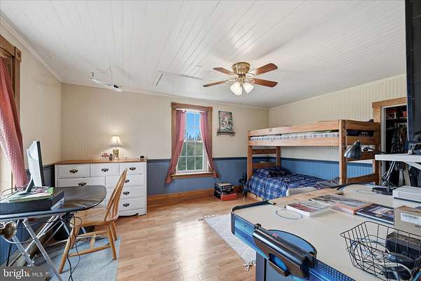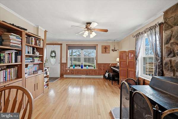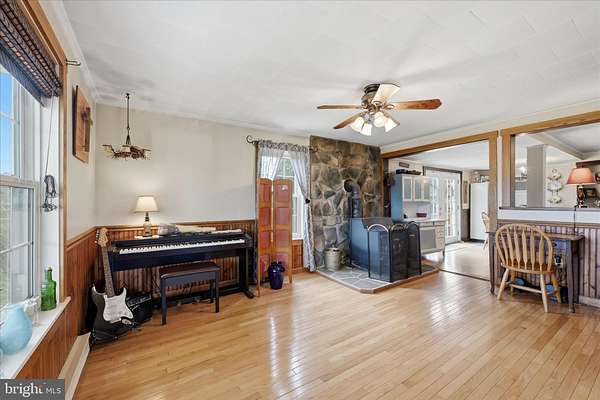 - Ceiling Fan(s), Chair Railings, Traditional Floor Plan, Wainscotting, Window Treatments, Wood Floors, Wood Stove