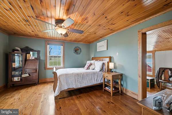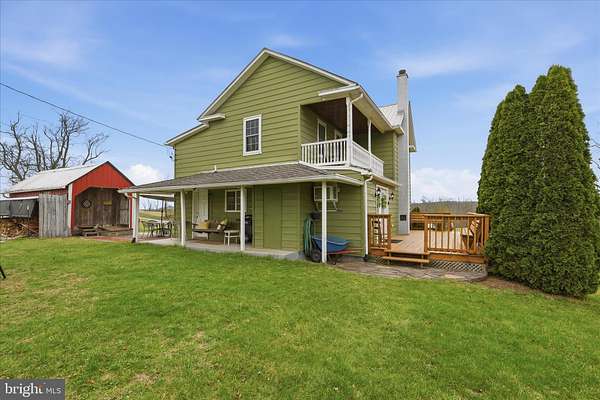 Charming 1899 Farmhouse, fully renovated in 2007, offering a perfect blend of historic character and modern updates on a scenic 2-acre lot with a small pond. This property features hardwood floors, wainscoting throughout, a durable metal roof, and a stunning stone wall with a wood stove. Recent upgrades include a 4-year-new pressure tank, water softener, and a newly re-stained deck. The exterior siding was painted in 2016, with fresh paint added this week to the front porch and pillars. Enjoy serene country living from the front porch, side deck, or the private second-floor deck off the primary bedroom. Complete with a barn, playhouse, and a workshop with electricity, this is a truly special place to call home. Professional Photos Coming Soon!