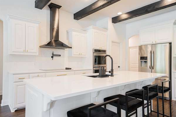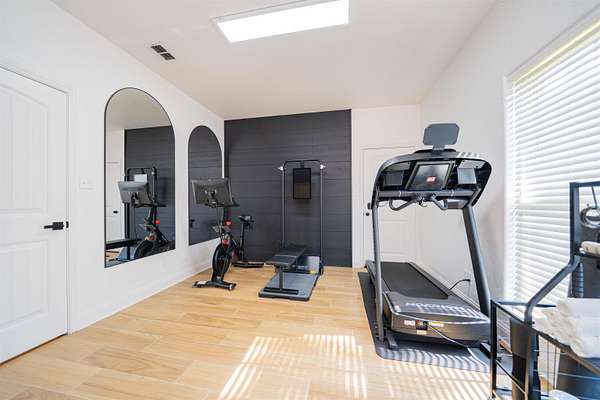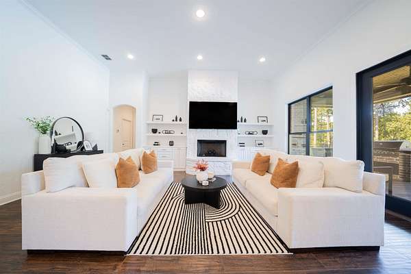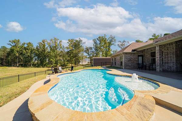 This ONE has it all! Welcome to 131 Osage Lane Gilmer Tx that sits on 2.26 acres. Enter your new home that has a modern sleek look and has been recently updated. The open-concept living area seamlessly connects to the kitchen, featuring all stainless-steel appliances, a pot filler, a double oven (cook dinner and desert at the same time) and plenty of storage for all of your cookware. The large pantry is a bonus. The primary suite feels like a luxury resort every day, complete with an electric fireplace, a cozy sitting area, and a built-in mini fridge/bar. The bath offers a soaking tub, his/her vanities with stylish light mirrors, custom shower with light in the soap box and a HUGE walk in closet. One of the standout features is the home theater, equipped with a full mini bar, fridge, and sink. The back yard is a perfect place to entertain guests. Built in BBQ grill, pool and great views. Lets not forget the 20x25 shop that is a versatile space to store all your toys or turn it into a man cave or she shed. As an added bonus, this home features a whole home generator. This home truly has it all!