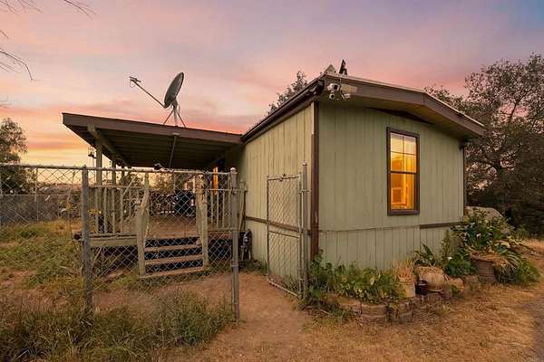 Wow! 2.61 acres of varied terrain featuring unique rock outcroppings, treed parcel with mature Oaks, parially fenced with chainlink, storage sheds and previously Health approved 2br/1ba manufactured home (opposite side of road for pivacy). Main home built in 1946 has a privacy gated entry with meandering road leading to 2br/1ba Ranch home with combo dining/kitchen, living room for comfortable family entertainment, bedrooms with original wood floors and covered front porch to enjoy those mountain views and sunsets! The sellers converted section of home to allow for an additional 1br/1ba bungalow enhanced by attractive vaulted wood ceiling, kitchenette and bath with combo shower/tub and access to rear yard. Homes need some TLC but lots of living area for multi family use and enjoyment!