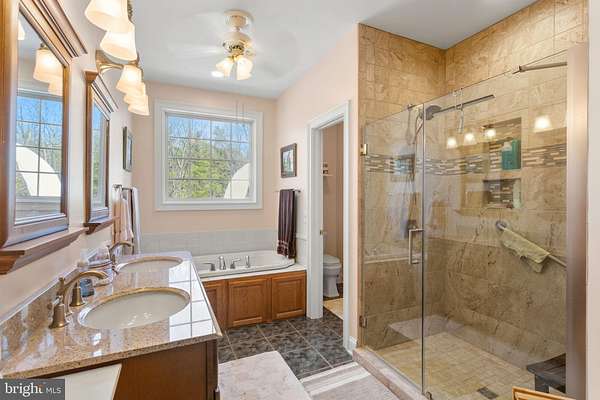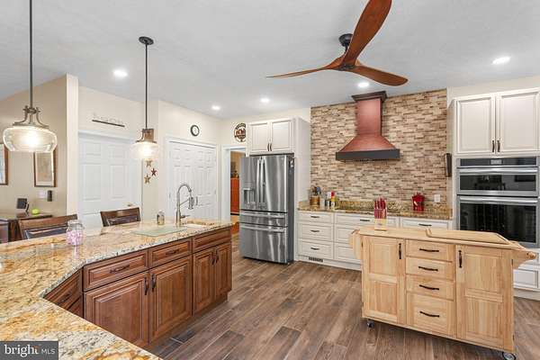 - Carpet, Ceiling Fan(s), Combination Kitchen/Dining, Dining Area, Entry Level Bedroom, Island Kitchen, Jetted Tub Bathroom, Pantry, Recessed Lighting, Tub Shower Bathroom, Upgraded Countertops, Walk-In Closet(s), Walk-In Shower Bathroom, Wood Floors