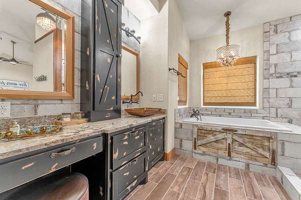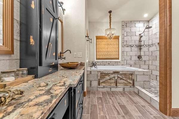 - High Ceilings, Shower Stall, Shower/Bath Combo, Walk-In Closet(s)
