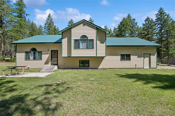 Nestled in the wooded foothills above Somers, this 2290 square foot custom home rests on 2.81 private acres, offering space, separation, and a true Montana setting. Built in 1994 and thoughtfully positioned toward the back of the parcel, the property is surrounded by mature trees that create a peaceful, buffered atmosphere. Designed across three distinct levels, the 3-bedroom, 3-bath layout delivers versatility rarely found at this price point. The main living area is filled with natural light from generous windows that frame the surrounding landscape. A functional kitchen and dining space anchor the home, flowing comfortably into the living room for everyday living or relaxed entertaining. Bedrooms are spacious and well-separated, including a private primary suite with its own bath. The lower level offers additional living and storage space. An upper-level flex space and additional garage-adjacent area provide options for a home office, studio, hobby room, or creative workspace.