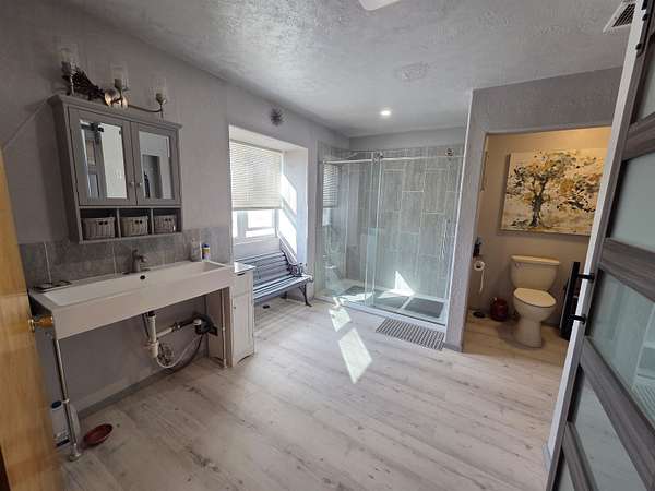 This majestic home will not be like any of the other cookie cutter homes - it is well worth your time to see! Downstairs has lots of room for a busy lifestyle. The entrance/living room is huge with all tiles floors, pellet stove and a separate oversized study/hobby room with built in shelves. The remodeled kitchen has an eat-at bar, dining area and a massive walk-in pantry. Upstairs has 4 bedrooms plus an office which could be the 5th bedroom. Plus it has 3 full baths and a pellet stove. The master suite is excessively large and has a completely remodeled/updated bathroom. This master suite has a perk which few offer and that's a private balcony on the east side that will provide you wonderfully shaded afternoons with phenomenal views of the mountains and tranquility. Downstairs, you'll appreciate the centrally located laundry room which also has a 1/2 bath for everyone's downstairs convenience. The hallway wall leading to the sunroom has lots of cubby holes for those things you use everyday but don't want them tucked away where it's inconvenient. The sizeable sunroom has a wall of windows giving you wonderful natural light. The 5/6th bedroom is off the sunroom and provides privacy to whomever enjoys it. You'll see a large separate building on the west side which houses an in-ground pool - so so many possibilities for family fun as well as entertaining friends. The large back yard is completely rock fenced and has the pump house which also houses the water softener. The east side of the house has a 3-car garage which includes a 2-car garage, an RV garage plus a extra-large area for your other toys, machinery or just lots of tools. This large garage/workshop has so much to offer the car enthusiast or even create your own space for your hobby or get-a-way. All this sits on 8.75 acres which has 7 pecan trees, a green house and unbelievable views. This will fit all your wants & desires but you'll have to see it first - do that today.