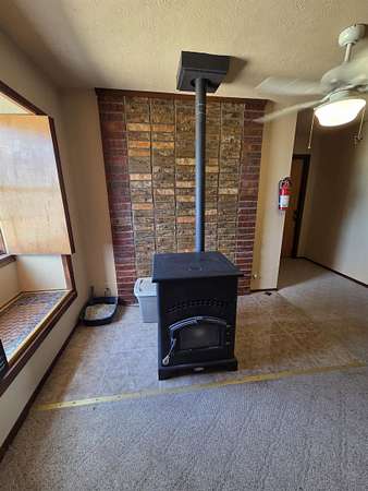 - Carpet, Eat in Kitchen, Flooring, PRTL, Partial, Pellet, Slab, Stove, Sunroom, Tile Flooring, Tub, Tub & Shower, Walk-In Closet, Wndo CVRNG