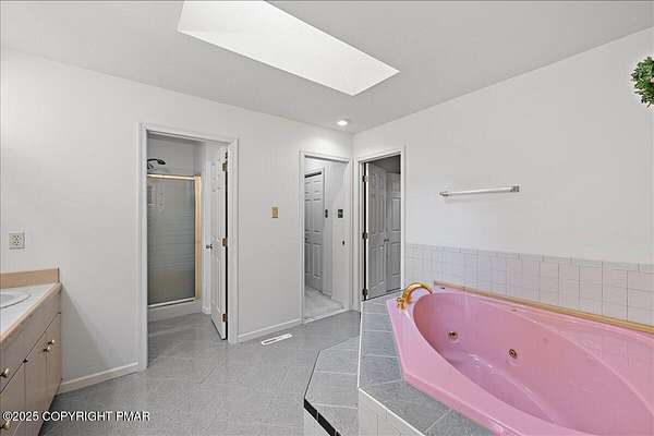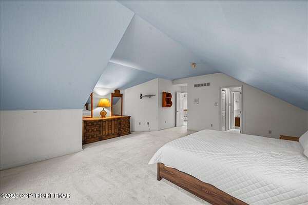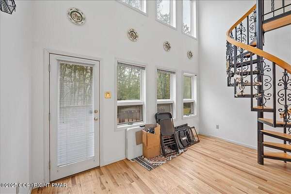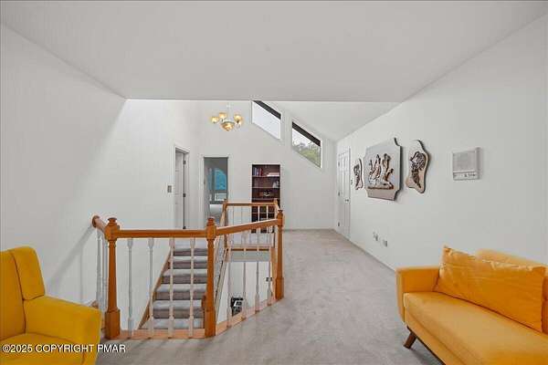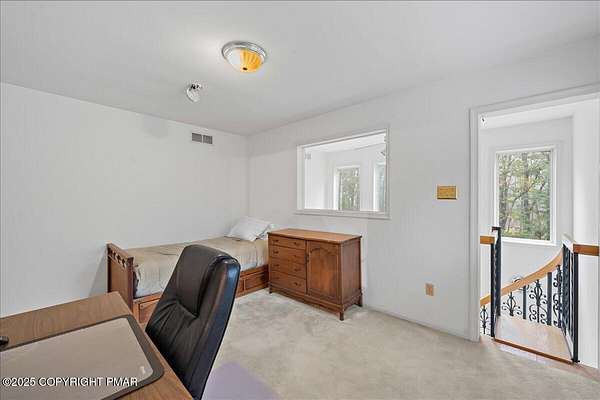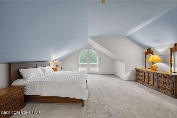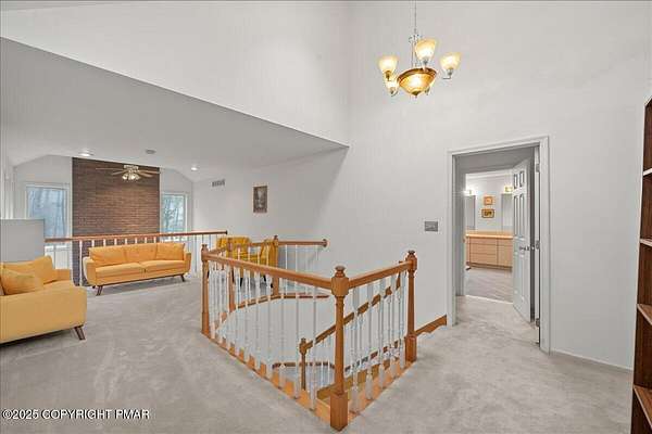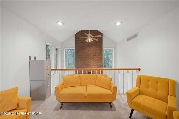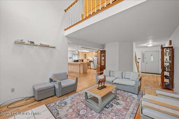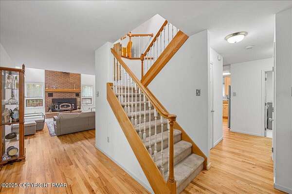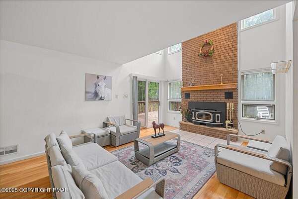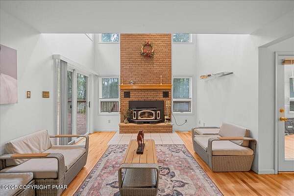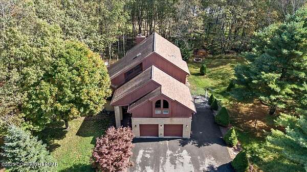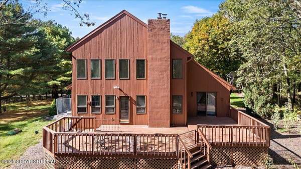 PRICE IMPROVED AND COMES WITH 1 YEAR HOME WARRANTY. Experience the best of Poconos living at 131 Stone Ridge Rd in the Jonas Mountain community of Albrightsville. Nestled on 1.73 wooded acres, this 4-bedroom, 2-bath contemporary offers over 3,000 sq ft of flexible living space. A soaring vaulted great room with floor-to-ceiling stone fireplace anchors the main level, seamlessly connecting to a dining area and functional kitchen with deck access. The layout provides two first-floor guest bedrooms and full bath, a loft overlooking the great room, a second floor private primary suite, and additional bedroom ideal for family, guests, or a home office. The full 1,400+ sq ft basement offers storage, workshop, or finishing potential. Outdoor living includes a welcoming front porch and rear deck framed by a wooded backdrop. Enjoy central air, multiple closets, and community-maintained roads, all just minutes to Jim Thorpe, Lake Harmony, Big Boulder, and the PA Turnpike. Whether your vision is a year-round residence, vacation retreat, or investment property, this home delivers privacy, scale, and location in the heart of Carbon County's Pocono Mountains.