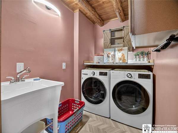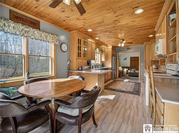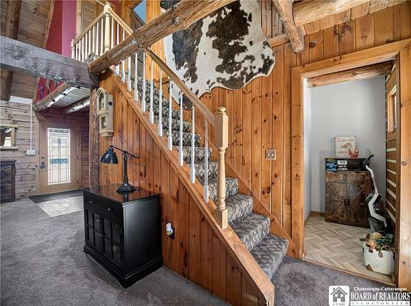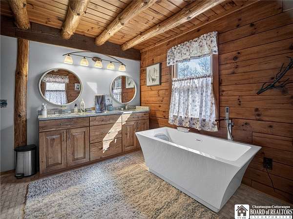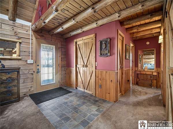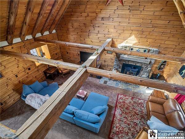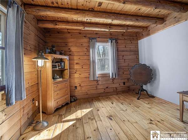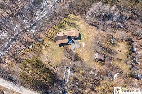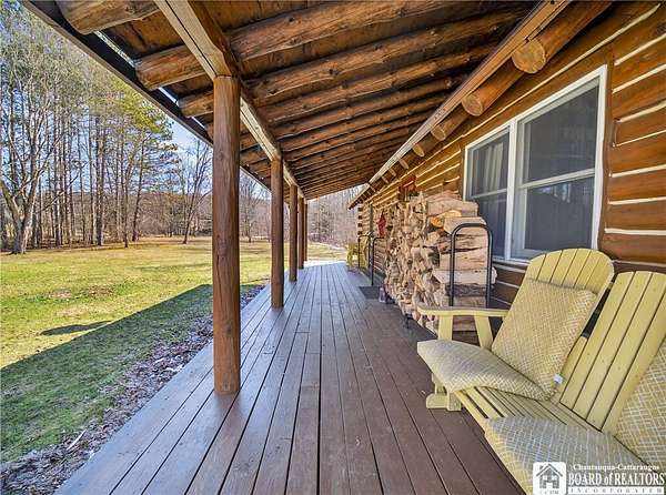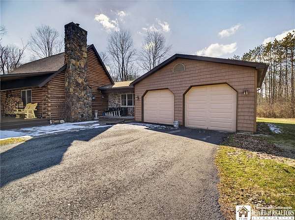 This home could be the start of your happily ever after! Set on 5 acres in the country, this log home is gorgeous, inside and out. The rural setting perfectly matches the rustic vibe. Inside, the home has a spacious living room with cathedral ceilings and a wood-burning fireplace. The country kitchen has ample counter space and is modern while still staying consistent with the rustic charm featured throughout the home. The dining room looks out over the yard, providing the perfect backdrop for every gathering. The bathroom has been customized to the current owner's specifications and features Jack-and-Jill sinks, a soaking tub, and a spacious step-in shower. The main floor also has a cozy family room and a laundry room with a washtub sink. The primary bedroom is on the second floor and offers two closets. The full basement is dry and currently serves as a storage area. It could be easily turned into a family room. Outside, there is a deck off the back of the house, the perfect place to enjoy a weekend barbecue. The home has an attached two-bay garage, and there is also a shed on the property. The house is also equipped with a generator hookup.